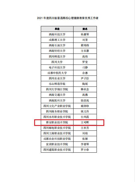 11-02-2021我院荣获“2021年度四川普通高校心理健康教育工作先进单位”