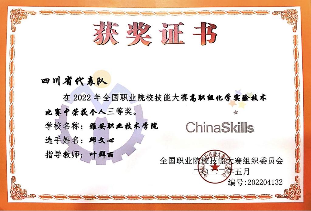 08-19-2022喜讯:学院学生在2022年全国职业院校化学实验技术技能大赛中获佳绩