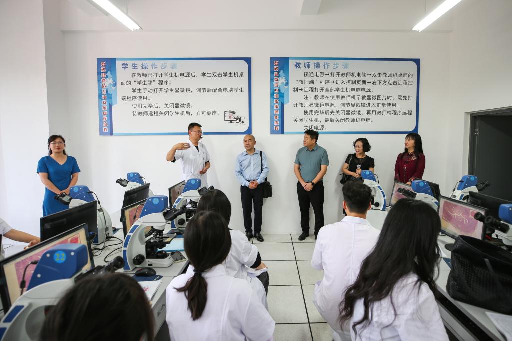 6月7日下午,西南医科大学党委常委、组织部部长冯天明一行到学院经开区校区开展调研,雅安市市校合作专班负责人杨峰,学院党委副书记付洪涛、副院长彭裕红和相关二级单位负责人陪同调研。调研组一行先后参观了学院校史馆、临床医学院川西医学教育中心和药学与检验学院中药制剂车间,实地了解学院在实训室建设、产教融合、校企合作及教学科研等方面所做的探索和取得的成果。调研组一行走进学院与西南医科大学联办的护理本科班课...