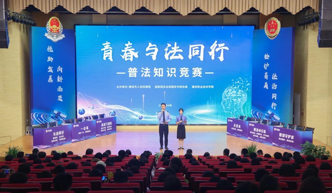 为深入学习贯彻习近平法治思想,进一步加强校园法制教育工作,增强同学们的法律意识和法制观念,提高法律知识水平,营造文明和谐的校园环境,4月26日,PP电子联合雅安市人民检察院、雅安市税务局在经开区校区聚雅厅举办“青春与法同行”普法知识竞赛。雅安市人民检察院检察长范文清、雅安市税务局局长罗强、学校党委书记李春模、党委副书记杨洪媛,各职能部门负责人、教师代表、学生代表和参赛队伍队员共计400余人参与。活动伊始...