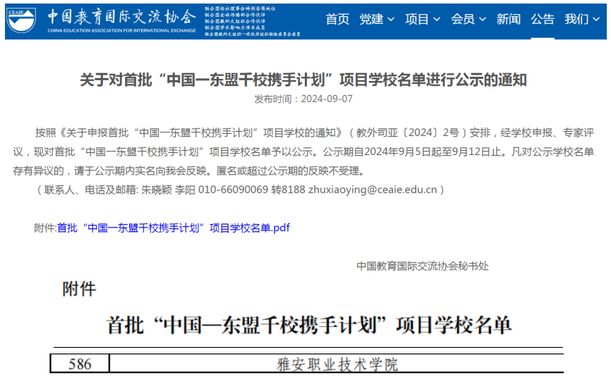 近日,中国教育国际交流协会发布了《关于对首批“中国-东盟千校携手计划”项目学校名单进行公示的通知》,PP电子成功入选。据悉,“中国——东盟千校携手计划”作为国家级重要项目,由教育部国际合作与交流司发起,旨在通过深化中国和东盟教育领域互联互通和互学互鉴,助推双方全面战略伙伴关系发展。计划吸引了中国和东盟1500余所院校积极参与。此次申报,学校严格按照教育部《关于申报首批“中国—东盟千校携手计划”项目学校的...