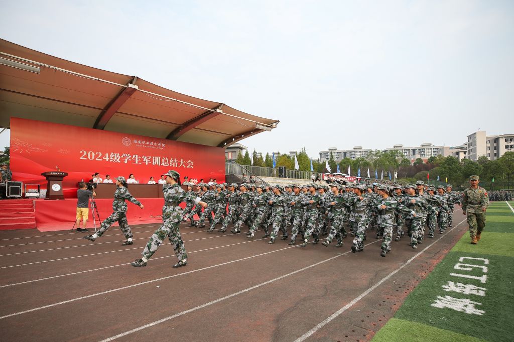 9月27日, 2024级学生军训总结大会在经开区校区和青年路校区运动场隆重举行。学校党委书记李春模,党委副书记、校长黄诚,雅安市雨城区委常委、区人民武装部上校部长王军,名山区人民武装部上校部长魏友旭及在家的党政领导班子成员出席大会,相关职能部门和二级学院负责人、全体参训教官和5900余名新生一起参加大会。“升国旗,唱国歌!”在庄严肃穆的国歌声中,五星红旗冉冉升起,军训总结大会拉开帷幕。党委副书记杨洪媛,党...