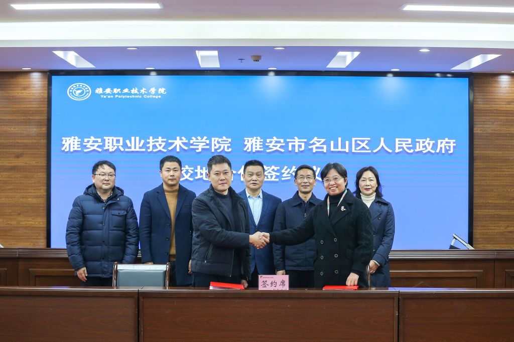 为进一步深化校地合作,推动地方经济社会高质量发展,12月13日,学校与名山区校地合作签约仪式在经开区校区311会议室举行,学校党委书记李春模、名山区委书记余云峰出席仪式并致辞,学校副校长彭裕红,名山区委副书记、区长邓旭,区委副书记裴胜军,区委常委、宣传部部长吕洪锐,副区长姜肖参加签约仪式。学校党委副书记杨洪媛主持仪式。李春模在致辞中对余云峰一行的到来表示热烈欢迎,简要介绍学校人才培养、师资队伍、产教融...
