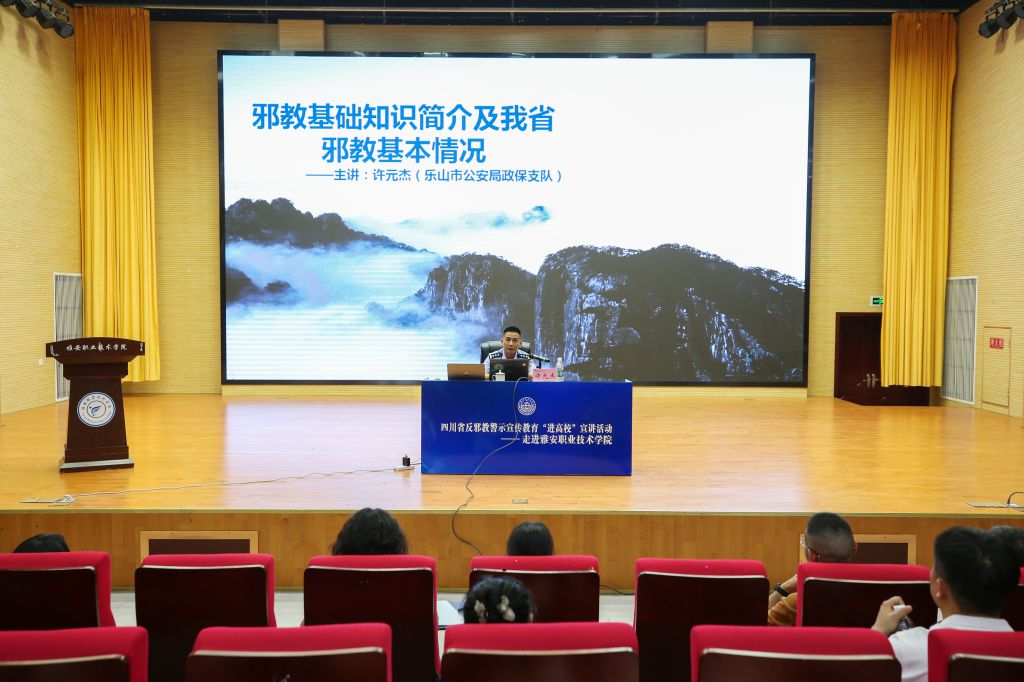 为引导广大高校师生牢固树立社会主义核心价值观,加深高校师生对邪教特征和危害的认识,提升广大师生识别和抵御邪教的意识和能力,5月20日下午,由四川省反邪教协会、四川省公安厅反邪教总队主办的反邪教警示宣传教育“进高校”活动在学校经开区校区聚雅厅举办。四川省反邪教协会秘书长周世英,学校党委常委、副校长陈冬冬,党委常委、工会主席、宣传统战部部长夏安琼出席活动。活动中,乐山市公安局政保支队反邪教大队大队长、...