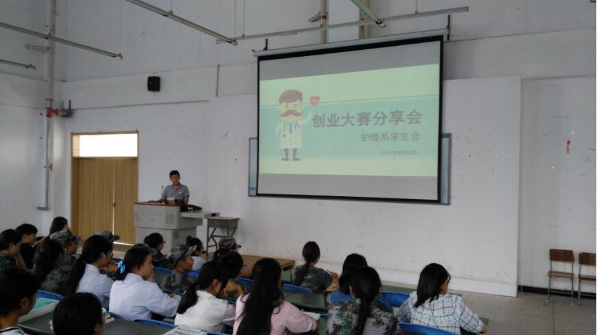 【本网讯】为了激发当代大学生自主创业热情,培养和提升大学生的创造精神、创新意识和创业能力,护理系学生会于9月20日中午在图书综合楼阶梯教室102举办了创新创业大赛经验分享会,近100名同学参加。 参加四川省互联...