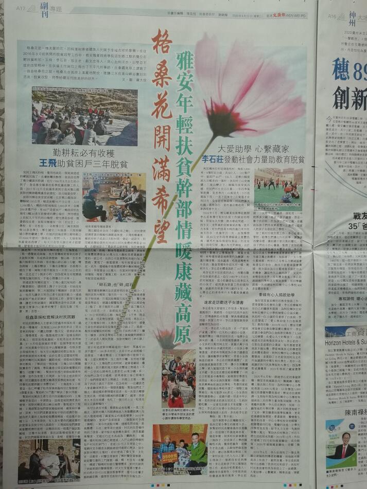 10-07-2020《香港文汇报》整版宣传PP电子游戏网站精准扶贫工作——发表罗大佺报告文学《格桑花开满希望—雅安年轻扶贫干部情暖康藏高原》