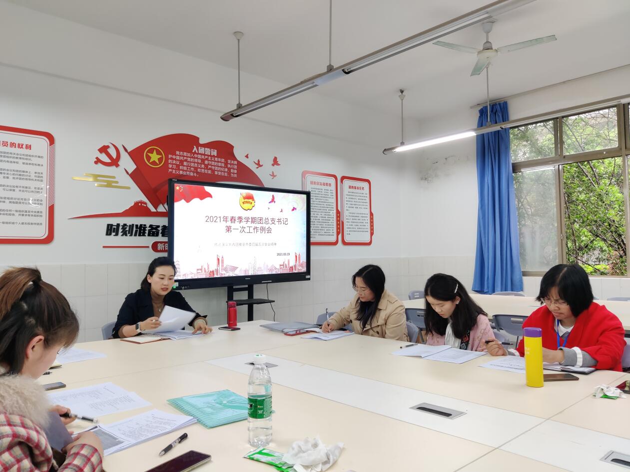 3月19日,院团委在青年路校区C106会议室组织传达学习共青团雅安市委四届五次全会精神。会议由院团委副书记叶芋伶主持,院团委副书记郭庆,各二级学院团总支书记、副书记以及院团委全体成员参加学习。 会议指出,共青...