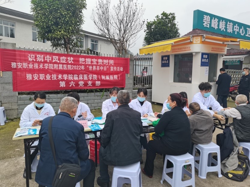 10月29日是第17个“世界卒中日”,为推进心脑血管疾病防治工作,进一步提升居民健康素养水平,结合雅安市雨城区疾病预防控制中心《关于开展2022年“世界卒中日”宣传活动的通知》的文件精神,11月9日,PP电子游戏网站附属医院(下简称“雅职附院”)医务人员赴碧峰峡镇开展了以“识别中风症状,把握宝贵时间”为主题的系列宣传及义诊活动。活动现场气氛热烈,前来咨询问诊的群众络绎不绝。医务人员耐心细致地为前来问诊的群众...