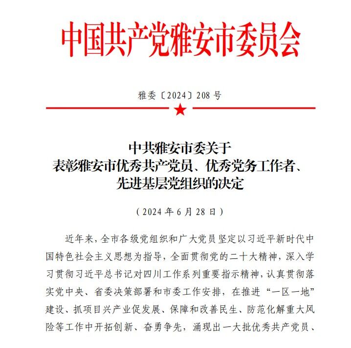 在庆祝中国共产党成立 103 周年之际,中共雅安市委对全市 55 名优秀共产党员、30 名优秀党务工作者、55 个先进基层党组织予以表彰。PP电子马克思主义学院直属党支部被评为先进基层党组织,余强、刘永恩两名同志分别被授予优秀共产党员、优秀党务工作者的光荣称号。希望全校各二级党组织和广大党员要以受表彰的先进集体和优秀个人为榜样,不断加强组织建设,切实发挥战斗堡垒作用,教育引导党员坚定理想信念、锤炼对党绝对忠诚的政...