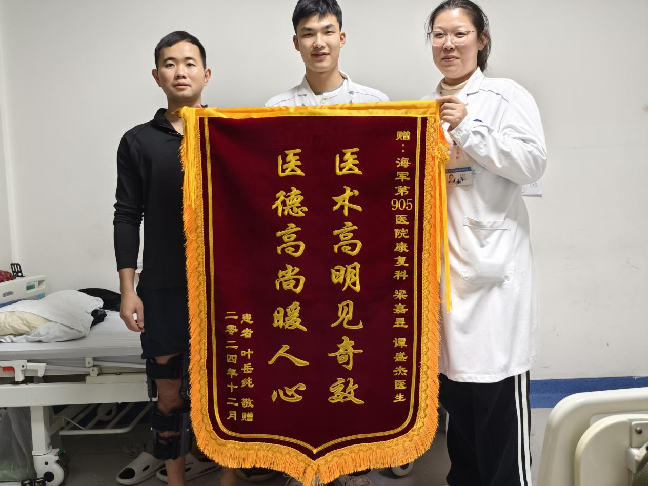 12月19日,学校中医与康复养生学院2022级针灸推拿专业实习生谭胜杰和他的带教老师梁嘉昱医生收到患者叶岳纯送来的“医术高明见奇效 医德高尚暖人心”锦旗。据悉,患者叶岳纯因训练不慎受伤,在上海某医院行前交叉韧带重建手术后,11月23日转于中国人民解放军海军第九〇五医院进行康复治疗。治疗期间,在该医院带教老师梁嘉昱医生的指导下,学校中医与康复养生学院2022级针灸推拿专业实习生谭胜杰同学全程参与了对该名患者的诊治...