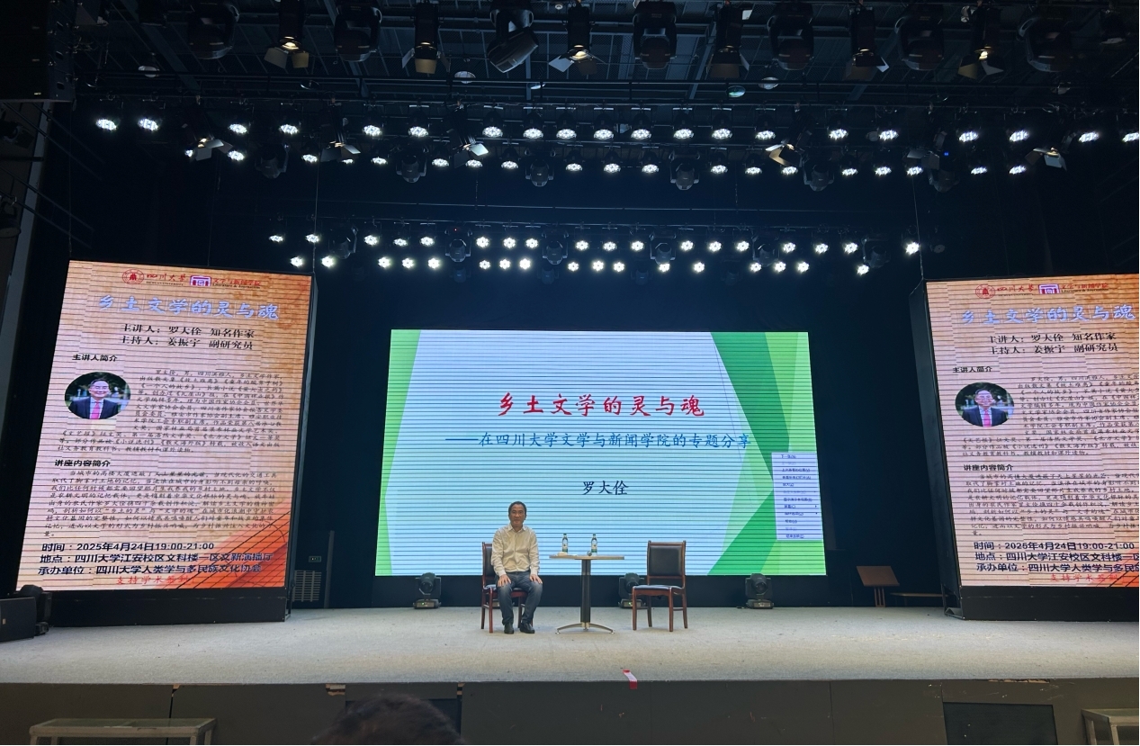 为迎接第30个世界读书日,促进校际学术交流,4月24日晚,学校工会副主席、乡土文学作家罗大佺应四川大学文学与新闻学院邀请,在四川大学江安校区文科楼一区文新演播厅开展“乡土文学的灵与魂”专题讲座。罗大佺以鲁迅经典作品《故乡》为切入点,梳理了当代作家乡土文学作品对文学视野开拓的脉络,介绍了90年代两位作家在乡土文学领域的突出贡献和新世纪乡土文学作品的责任感,并结合自身从乡土成长、在乡愁中升华的创作历程,深...