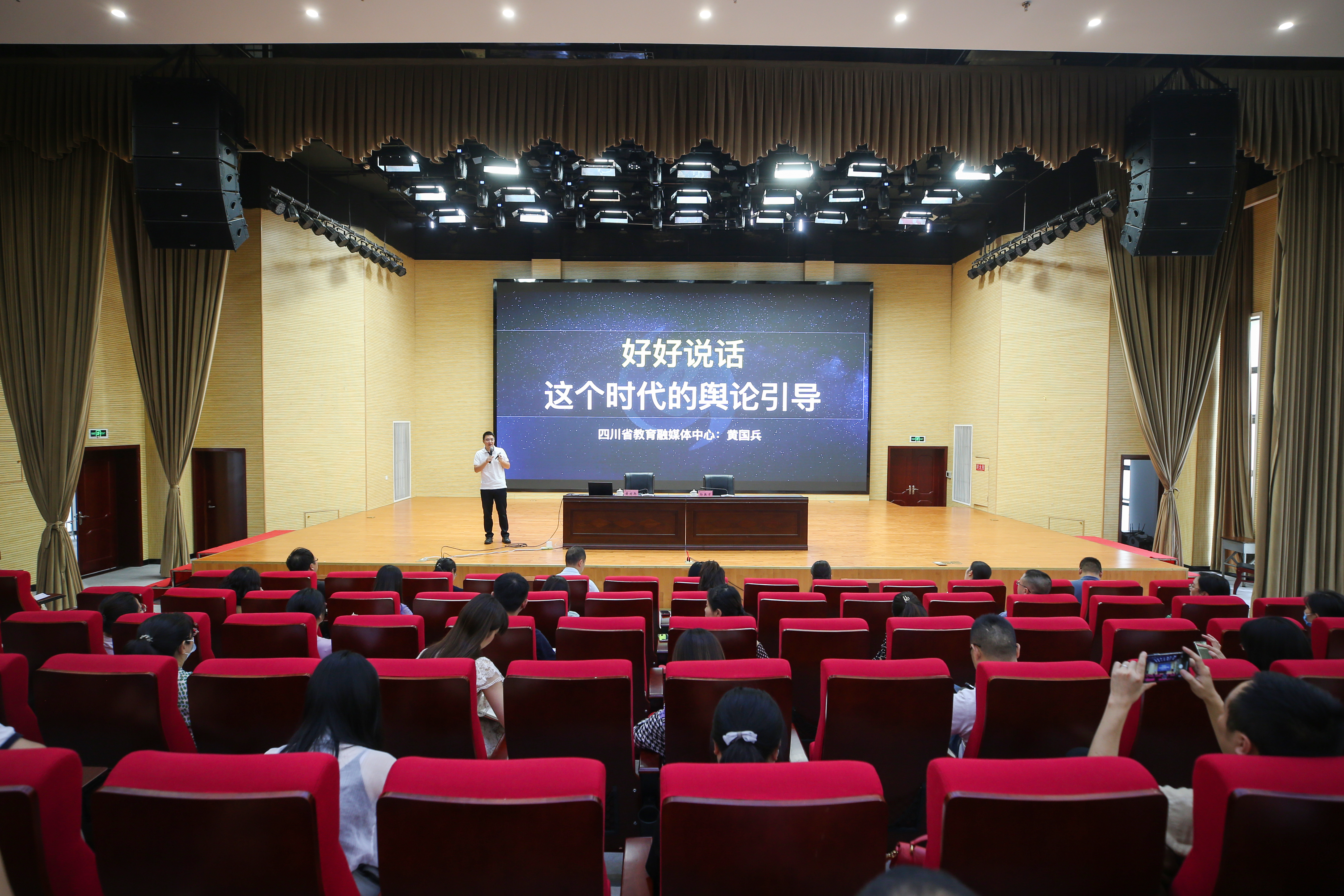 四川省教育厅新媒体内容主编黄国兵以“好好说话——这个时代的舆论引导”为题,结合大量鲜活案例,围绕新时代宣传舆论工作的基本要求、宣传员承载的责任、如何做好宣传等内容,为全体参会人员上了一堂具有丰富理论性、实践性与指导性的培训课,内容丰富、干货满满。