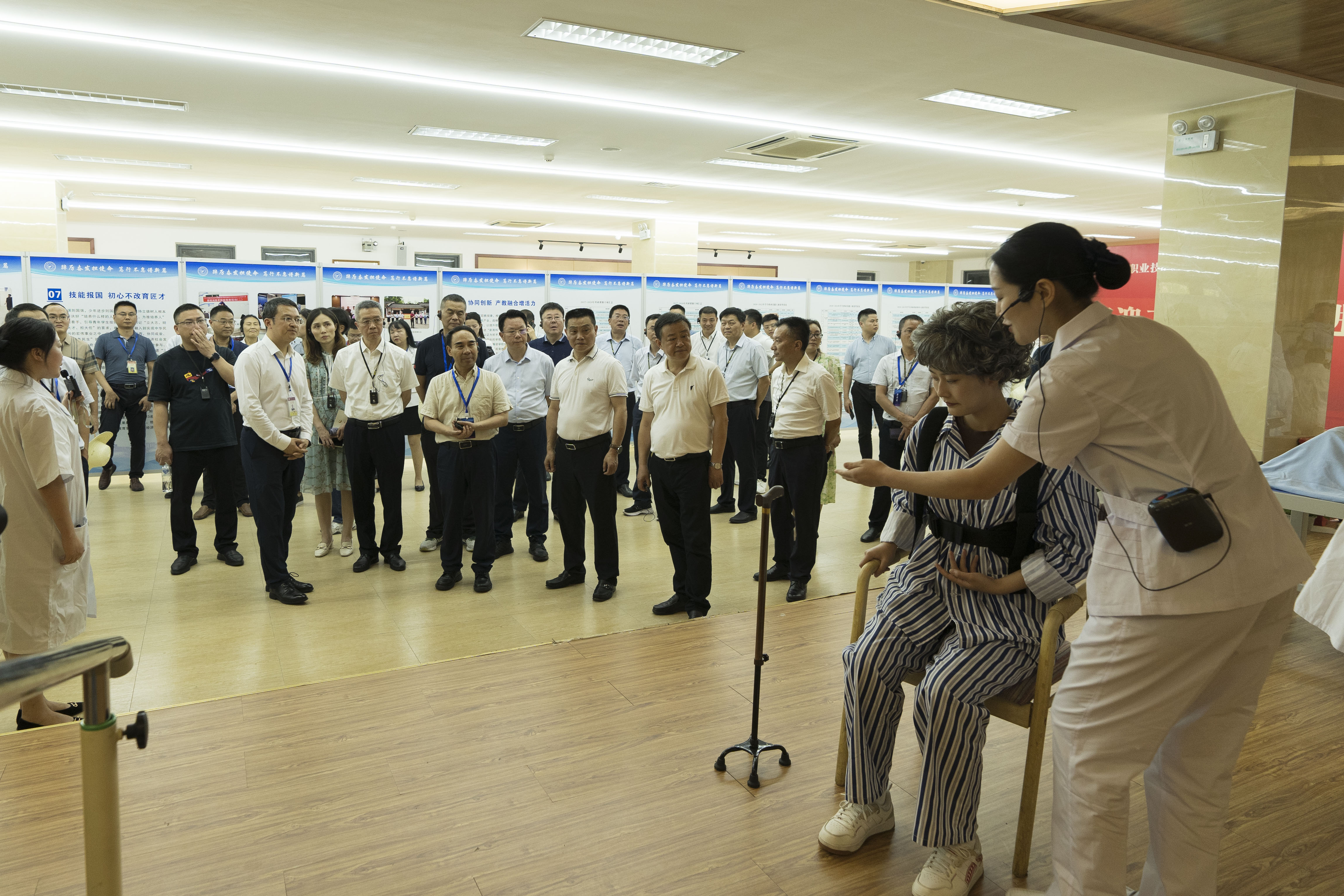 考察组一行观摩了护理学院、临床医学院、中医与康复养生学院学生展示的心肺复苏、外伤包扎、中医传统康复技术和现代康复治疗技术现场操作,PP电子在2021年全国乡村振兴职业技能大赛中荣获“养老护理员”项目职工组优胜奖的项目也进行了展示。领导嘉宾还饶有兴趣地亲身体验了腰椎、颈椎正脊手法和传统推拿手法、揿针技术等诊疗。大家了解了PP电子作为四川省科普基地的生命科学馆和中药标本馆基本情况。现场洋溢着浓浓的交流互动氛围,对PP电子弘扬中医药文化,培养中医药卫生健康人才取得的成效表示赞赏。
