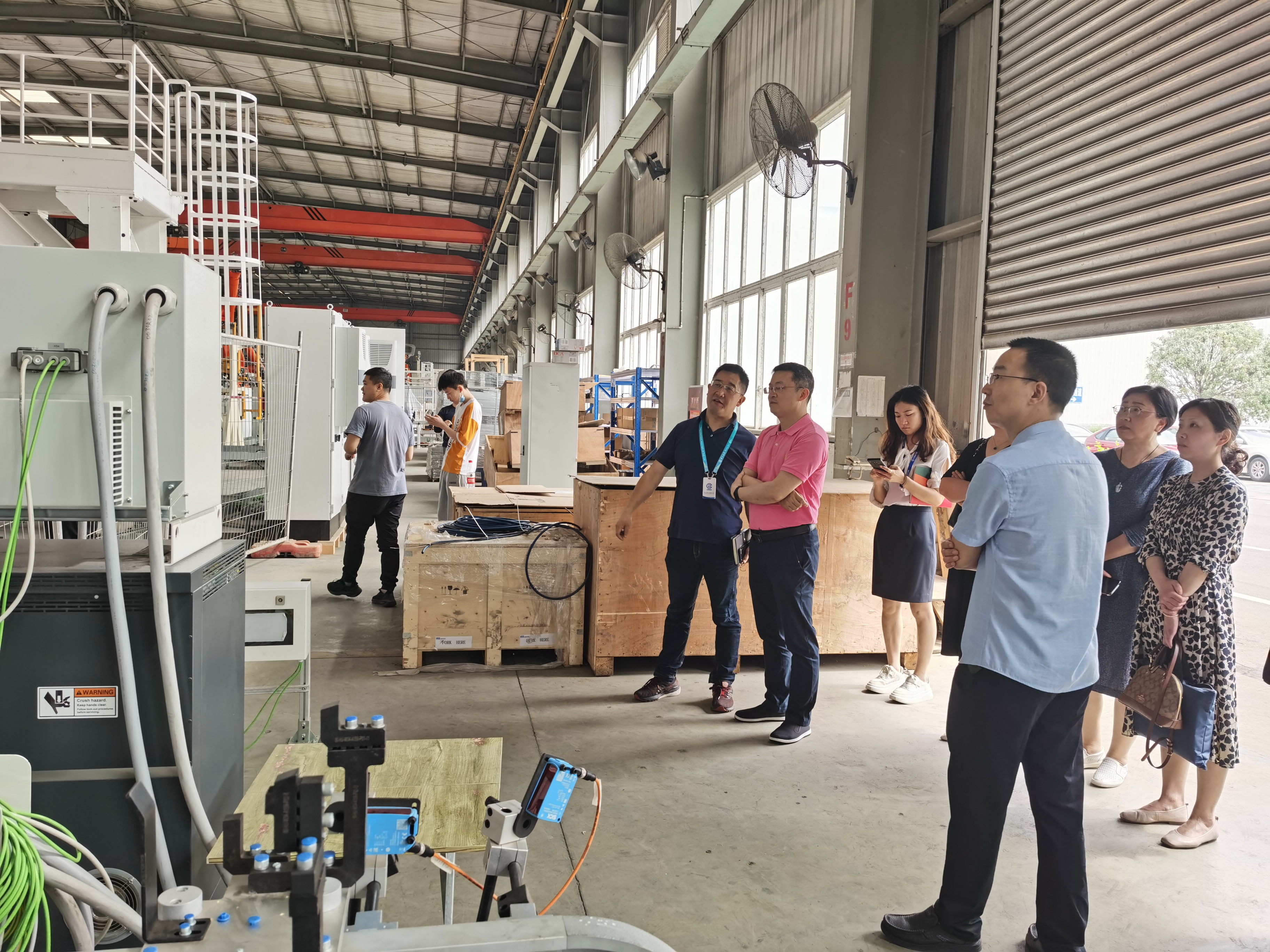 上午,黄诚一行来到四川成焊宝玛焊接装备工程有限公司考察,该公司是一家专门为汽车工业及其它工业部门提供焊接成套设备的开发、设计、制造的高科技企业。在董事长何华的陪同下,黄诚一行参观了公司展览馆和白车生产线机器人组装调试车间,详细了解了公司的发展历程、荣誉成果和生产经营状况等情况。