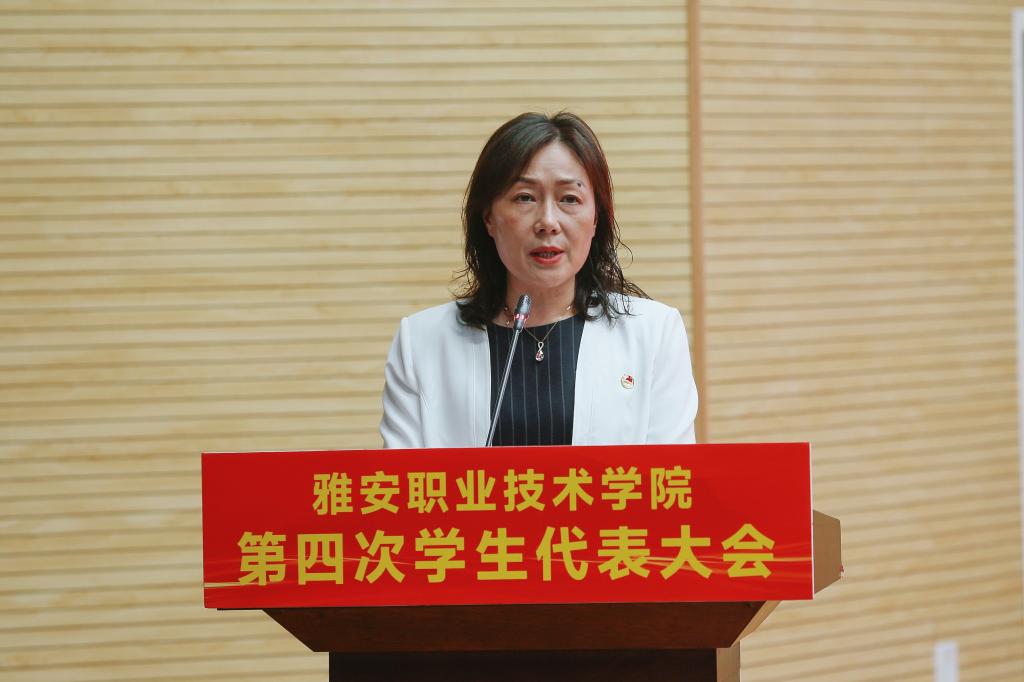 杨洪媛代表学院党委对大会召开表示祝贺,并对雅职青年提出三点希望:一是要以理想为帆,不惧远航;坚信中国道路、坚守价值追求、坚定文化自信,积极践行习近平总书记“立大志、明大德、成大才、担大任”的嘱托。二是要以奋斗为桨,不畏风浪;勇当开路先锋,争当事业闯将,让青春因奋斗而精彩,在实现中华民族伟大复兴的新长征路上奋勇搏击。三是要以奉献为刃,破茧成蝶;无私奉献,无畏向前,甘做时代的“守护者”,在新时代新征程中,不断书写雅职青年的勇毅和骄傲,交出雅职青年的时代高分答卷。