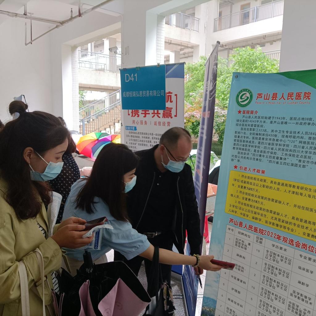 目前正处于四川省2022届毕业生就业促进周暨“百日冲刺”系列活动期间,同步举行的还有网络双选会。网络双选会分设学院就业信息网、校招365(支付宝小程序完美校园)和四川卫生人才网三个分设场,目前已有参会单位近400家,提供11000余个岗位。
