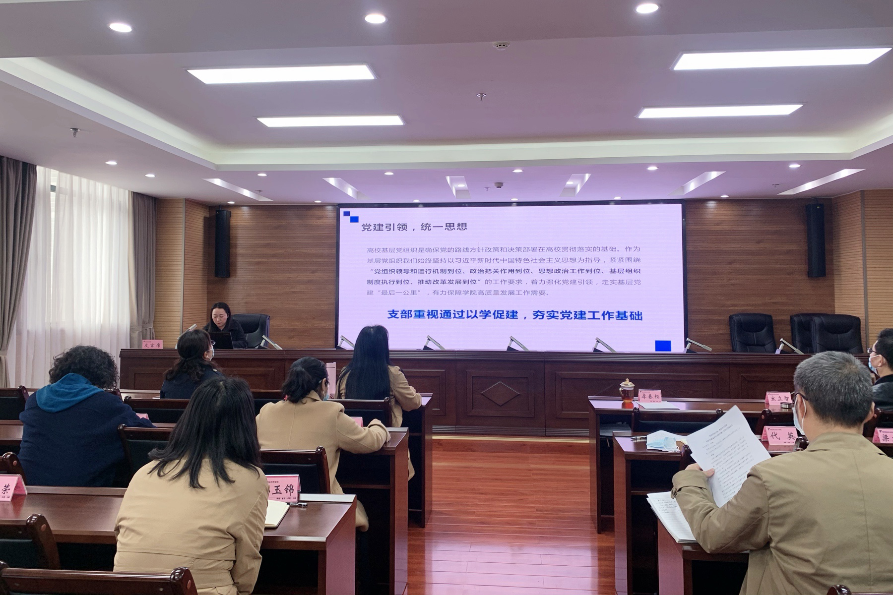 3月22日下午,学院党委召开党组织书记工作例会。党委书记李春模,党委职能部门负责人,各党总支(直属党支部)书记、副书记、党支部书记,省级党建思政示范创建立项项目负责人参加会议。会议由党委副书记付洪涛主持。