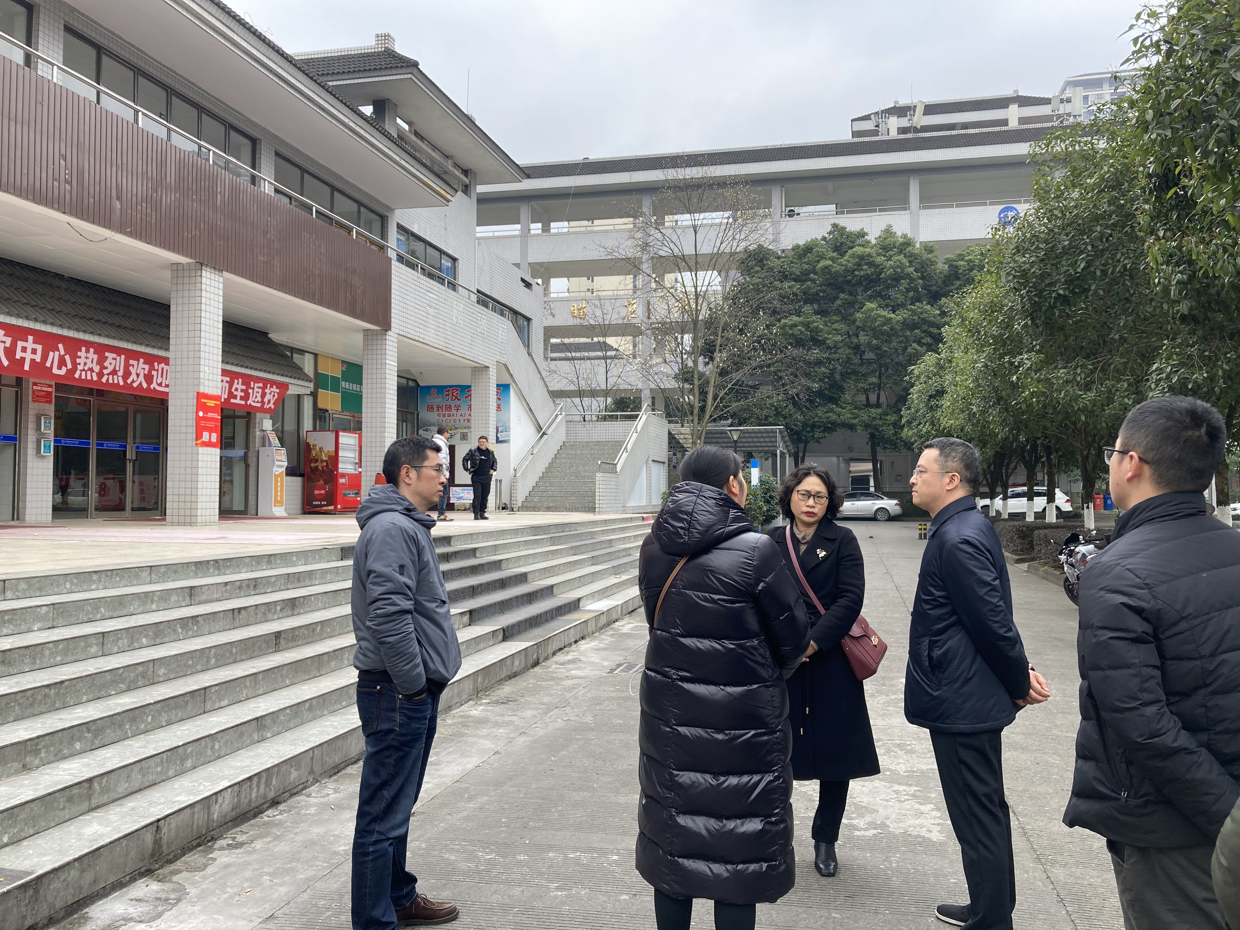 黄诚一行听取了基建后勤处处长胡慧兰对新学期运营情况的详细介绍,现场了解各档口入场、供应商配备、设施维修改造等前期筹备情况。