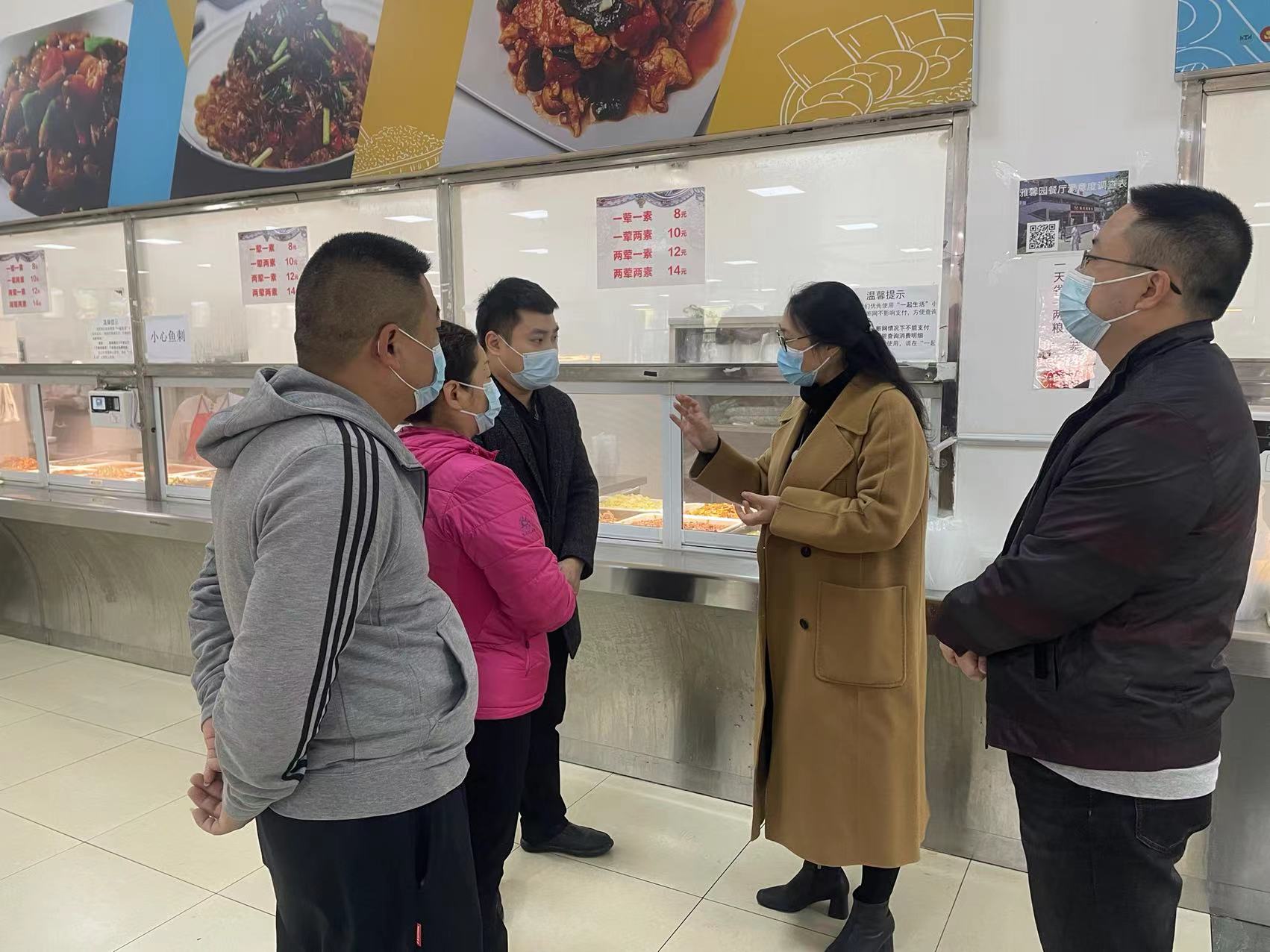 11月10日上午,学院工会主席夏安琼到青年路校区现场督导食堂及菜鸟驿站疫情防控工作。基建后勤处处长王伟才陪同检查。