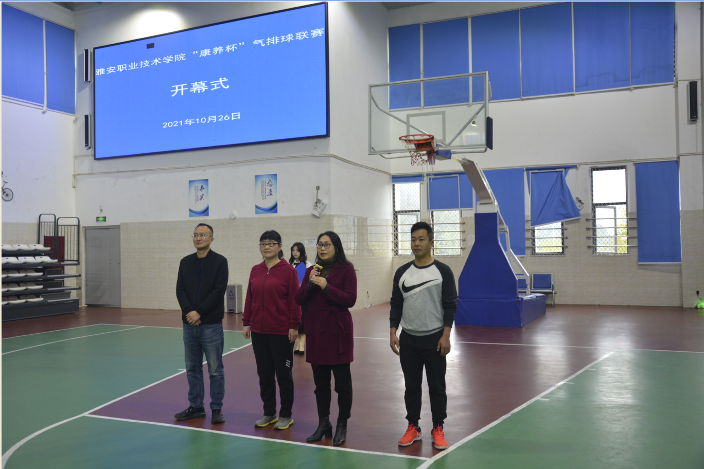 开幕式上,全体师生齐唱国歌。夏安琼致辞,她表示群众体育在提高人民整体素质,促进社会主义精神文明和物质文明建设方面发挥着越来越显著的作用。为更广泛地在师生中开展好群众性体育活动,学校在2021年先后组织了“康养杯”师生篮球联赛、羽毛球联赛,今天气排球联赛也开始了,希望全校师生增强全民体育健身意识,培养体育锻炼的技能和习惯,形成崇尚健身、参与健身的校园文化氛围。