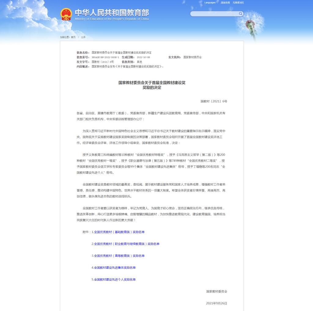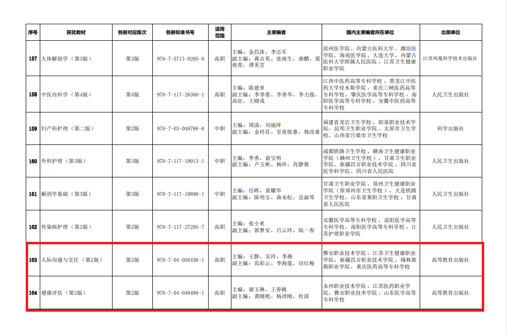 10月12日,教育部公布国家教材委员会关于首届全国教材建设奖奖励的决定。PP电子护理学院王静副教授主编的《人际沟通与交往》一书获得首届全国优秀教材二等奖。2020年开展的首届全国教材建设奖评选,是新中国成立以来首次设立全面覆盖教材建设各领域的专门奖励项目,也是全国教材建设领域的最高奖。