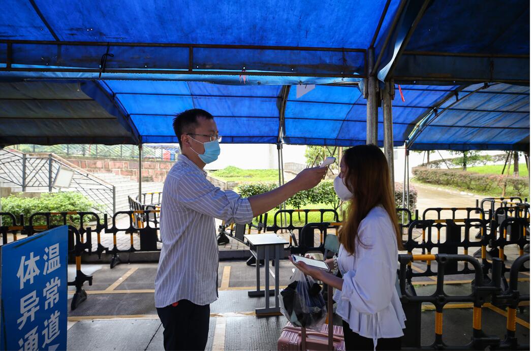 同学们分校区,按着标识标牌依次间隔排队进入,在校门口出示本人学生证或身份证、“四川天府健康通”绿码和核酸报告,全力配合学院值班保安的例行检查、校医室医务人员的体温检测、核酸报告查验、辅导员的审验注册后有序入校。同时,按照省教育厅的要求,学院及时组织省外返校学生进行核酸检测,附属医院安派采集人员到各校区核酸采集点采集标本,连夜检测出结果,以确保师生身体健康和校园安全。