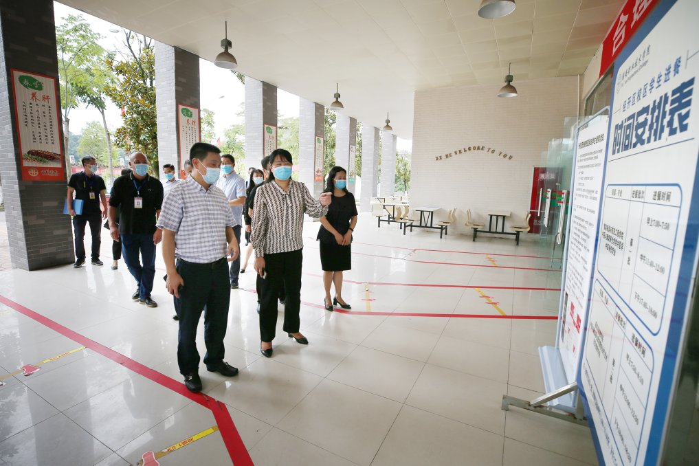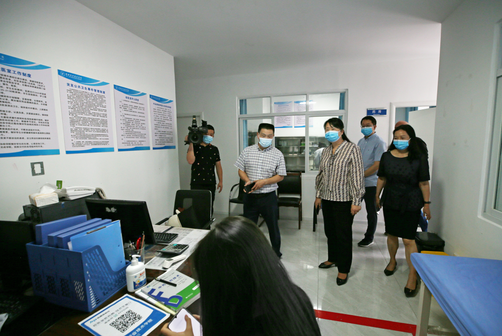 彭映梅先后来到学院学生报到测温通道、校医室、学生食堂、学生公寓等地,听取了李春模就学院基本情况和开学疫情防控工作的介绍,详细了解了学院疫情防控措施落实、新冠病毒疫苗接种、教职员工核酸检测、开学准备、校园食品安全等有关工作情况,对学院秋季开学疫情防控等工作给予了肯定。