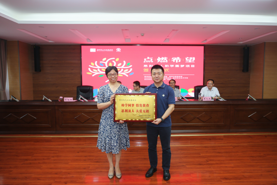 樊先茂在致辞中对省、市委统战部对学院发展给予的关心和支持表示衷心感谢,对思利及人基金会捐资助学的爱心善举、企业的责任担当表示感谢和赞赏。他详细介绍了学院发展历程、办学理念和宗旨、资助育人工作开展情况和成效、“思利及人助学圆梦项目”合作情况。他表示,学院严格贯彻落实国家及学校各项资助政策,开设精准扶贫、精准资助“绿色通道”,同时通过接受社会捐赠等方式,进一步完善学生资助工作,切实发挥助学育人的最大效益。学院将坚守办学初心,牢记立德树人根本任务,不断提升三全育人质量,培养德智体美劳全面发展的社会主义建设者和接班人来回馈社会、祖国和人民。