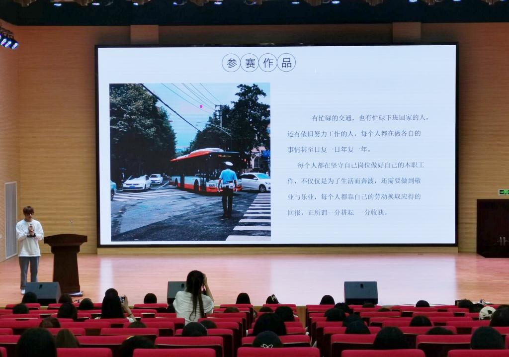 本次大赛采取十分制,评委们通过主题、内容、创新等方面进行打分评选。台上,选手们自信满满,怀揣热情与现场观众一起分享画面定格的瞬间。一幅幅生动的作品背后是同学们围绕社会主义建设发展、乡村振兴和基层劳动者讲述的一个个感人至深的故事,展示着中国共产党带领广大人民取得的伟大发展成就,传递着最普通的劳动者在国家建设发展中做出的点滴贡献。经过激烈角逐,智信学院彭浩南同学的作品《同学的名义》获得一等奖,护理学院李思琦同学的作品《守夜人》获得最佳人气奖。
