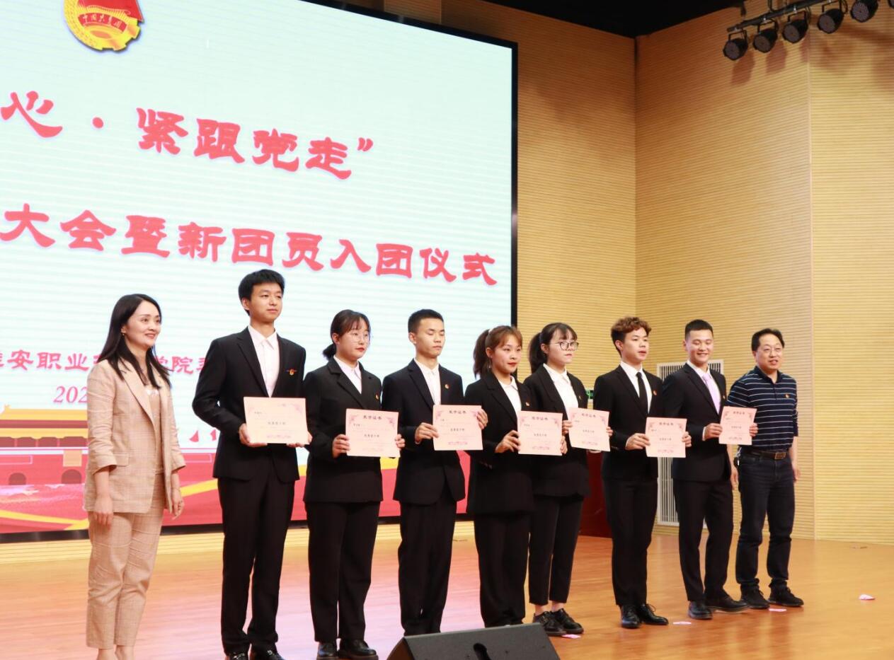 为庆祝中国共产党成立100周年、五四运动102周年,表彰学院共青团工作中涌现出的先进集体和个人,引导广大团员青年争先出彩,4月29日,学院“不忘初心·紧跟党走”2021年五四表彰大会暨新团员入团仪式在经开区校区聚雅厅举行。学院党委书记李春模,党委委员、副院长樊先茂,党委委员、纪委书记杨洪媛出席大会,相关部门及二级学院负责同志、团总支书记、副书记以及团员代表300余人参与大会。
