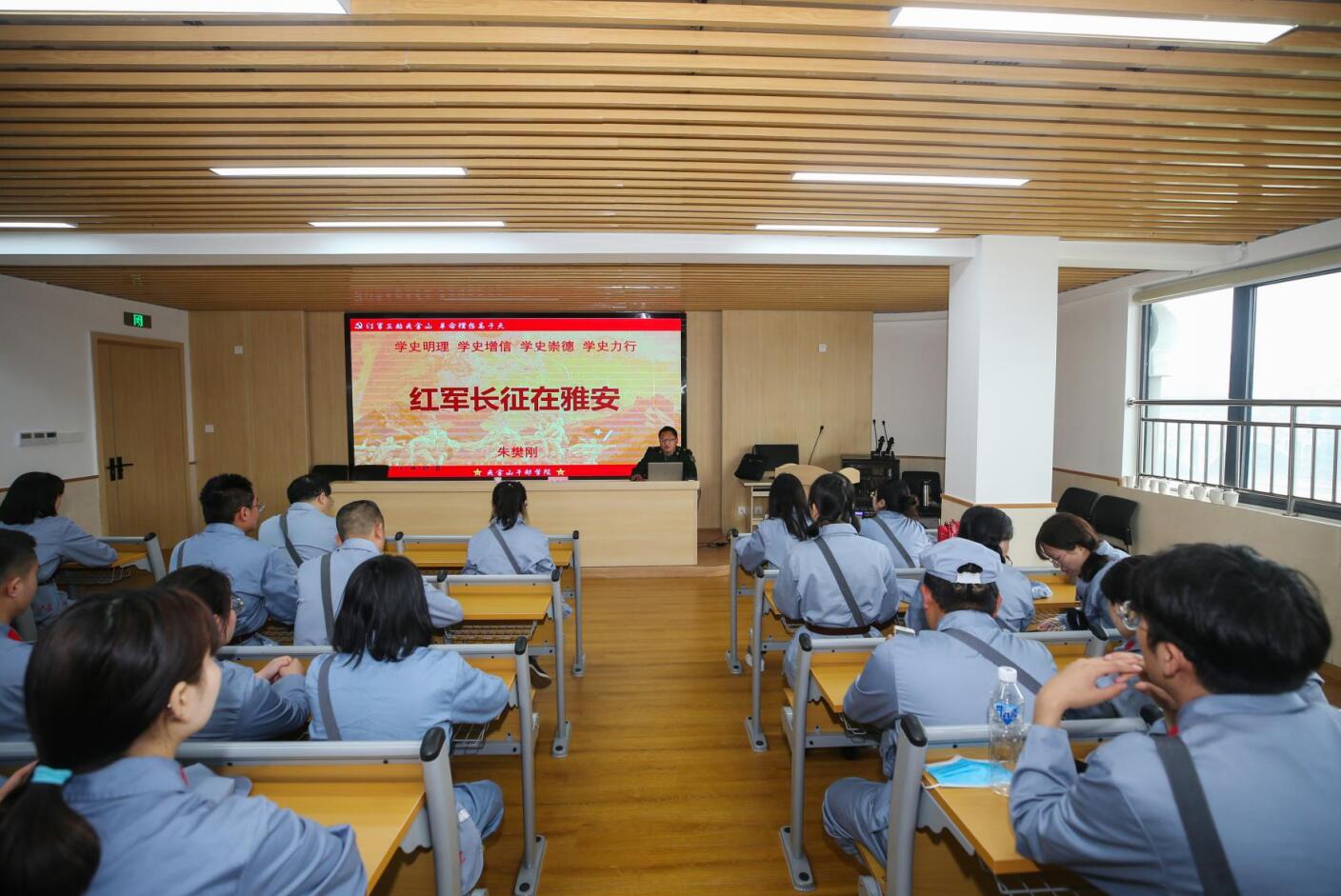 围绕建立新中国、改革开放、中国建设、中国速度等取得的历史性成就、发生的历史性变革,结合红军血战湘江、四渡赤水、巧渡金沙江等党史故事,李春模强调,全体学员要进一步深化对党的性质宗旨的认识,从党的百年非凡历程中激发信仰、获得启发,汲取坚守初心使命的营养剂和动力源,时时叩问初心、处处践行使命,坚定不移走中国特色社会主义道路,不断坚定对中国特色社会主义文化先进性的自信,增强做中国人的志气、骨气、底气,树立为祖国为人民永久奋斗、赤诚奉献的坚定理想。要锤炼品德,自觉树立和践行社会主义核心价值观,自觉用中华优秀传统文化、革命文化、社会主义先进文化培根铸魂、启智润心,加强道德修养,明辨是非曲直,增强自我定力,矢志追求更有高度、更有境界、更有品位的人生。要进一步加深对革命精神的领悟,赓续红色血脉,汲取磅礴的奋进智慧和力量,奋力扛起民族复兴的时代重任,积极投身到中国特色社会主义建设的实践中,努力走好新时代的长征路。要深刻理解把握时代潮流和国家需要,解放思想、与时俱进,敢为人先、勇于创新,实学实干,脚踏实地,在攀登技能高峰中追求卓越,在真刀真枪的实干中成就一番事业。