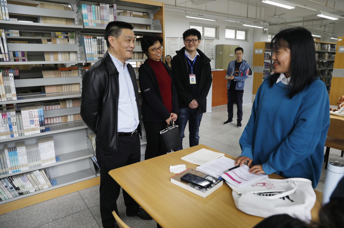 3月16日上午,学院党委书记李春模对青年路校区图书馆的运行现状和经开区实训与服务中心图书馆的全面开馆准备工作进行调研,副院长彭裕红、党政办公室副主任吴恙陪同调研。