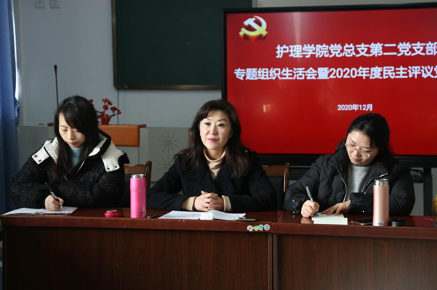 1月1日,护理学院党总支第二党支部专题组织生活会暨2020年度民主评议党员会在青年路校区实验实训楼607召开。学院党委副书记、院长石静出席专题组织生活会进行指导。护理学院党总支书记姚婕和第二党支部11名党员参加本次会议。会议由第二党支部书记殷显艳主持。