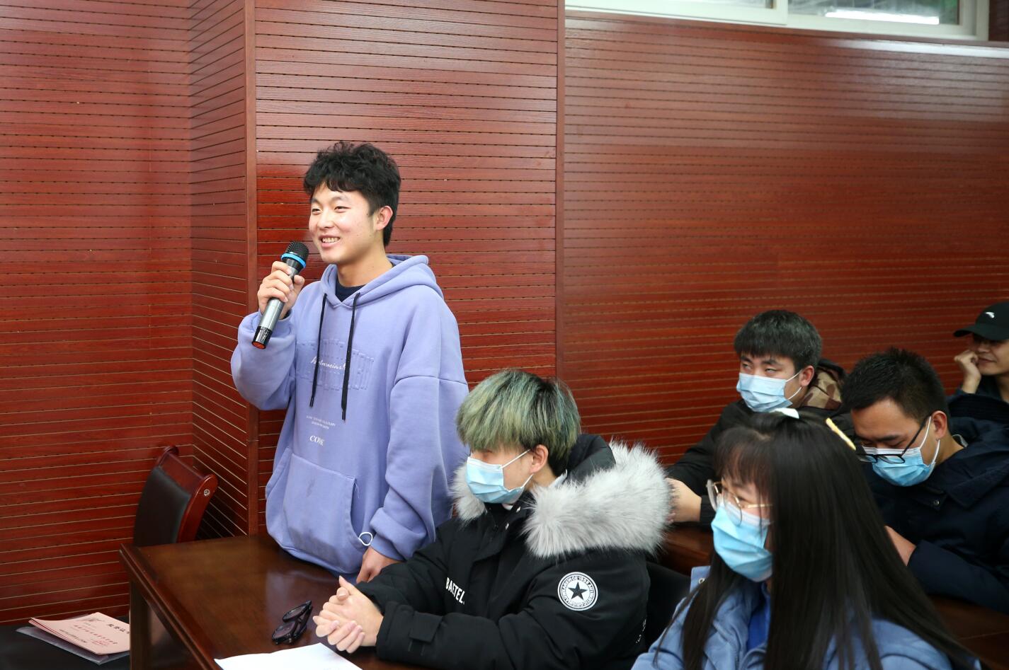 学生代表踊跃发言,表达了对学院和老师辛勤培育的感激之情,讲述了自己在学院、老师和同学的帮助下战胜困难、奋斗学业、追逐梦想的事例,也有同学坦言自己对于学习和未来工作的迷茫等。