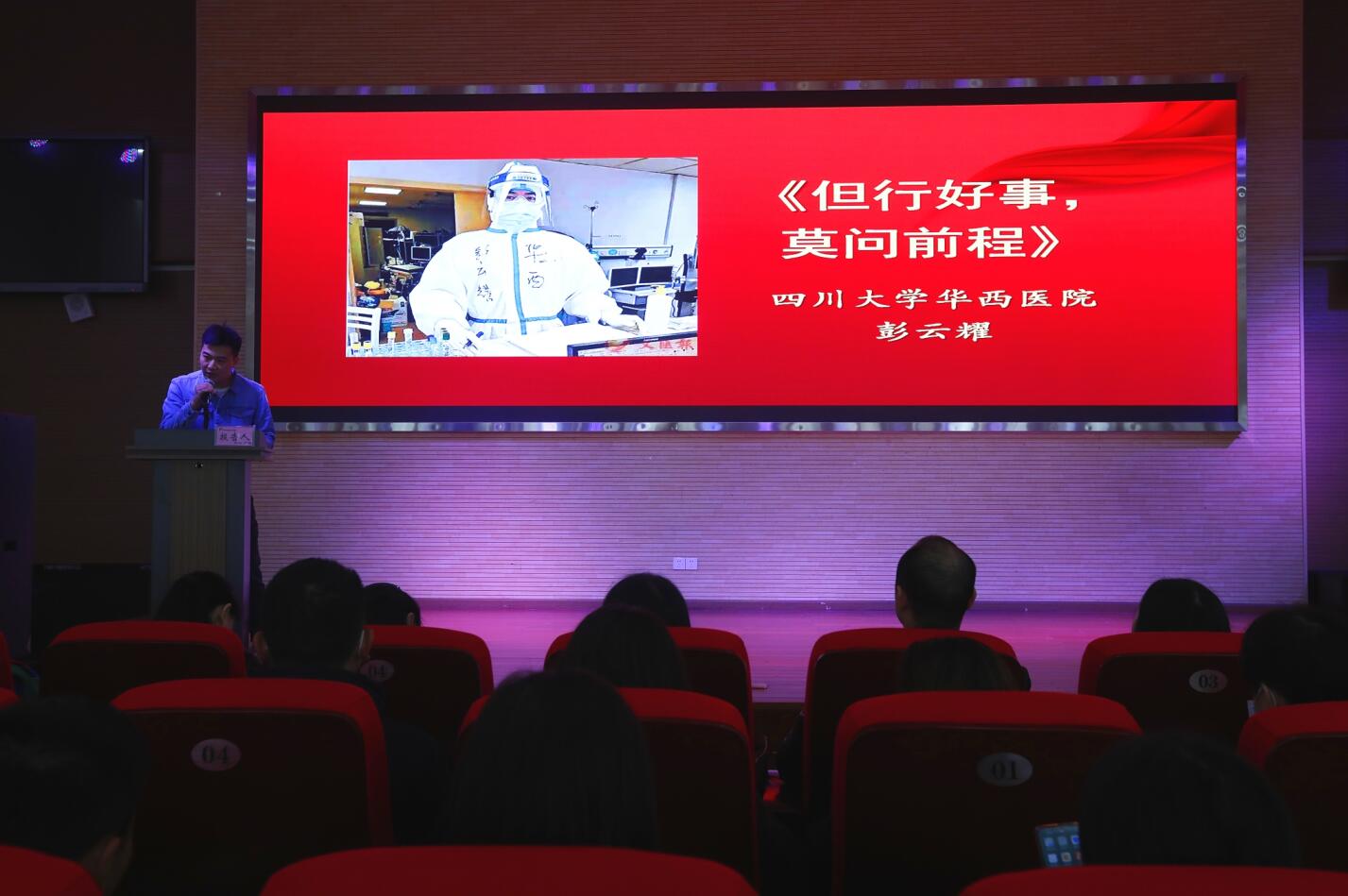 来自四川大学华西医院的2010级护理专业毕业生彭云耀、陈进东,来自雅安市人民医院的2007级护理专业毕业生李涯霖,以及来自雅安市中医院的2006级护理专业毕业生杨兴蓉分别以《但行好事,莫问前程》、《心之所向,行则必至,在平凡的职业中把握自己的未来》、《护理,我爱了》、《生命,在奉献中升华》为题分享了各自在抗疫期间的所见所闻所感和人生感悟,表达了对学弟学妹的期望以及对学院和老师们的感谢;解雪连以 《坚守护理初心,做一个在危难时刻站出来的平凡人》为题,讲述了自己为落入粪坑的小男孩进行急救使其生命脱险和参加疫情防控志愿服务的经历。五位校友都不约而同地表示:希望国泰民安,但如果以后遇到同样的事,依然会践行初心使命,毅然决然地奔赴“战场”。感人的故事、动人的事迹、崇高的精神,催人奋进,参加人员备受鼓舞,会场中时时响起热烈的掌声。