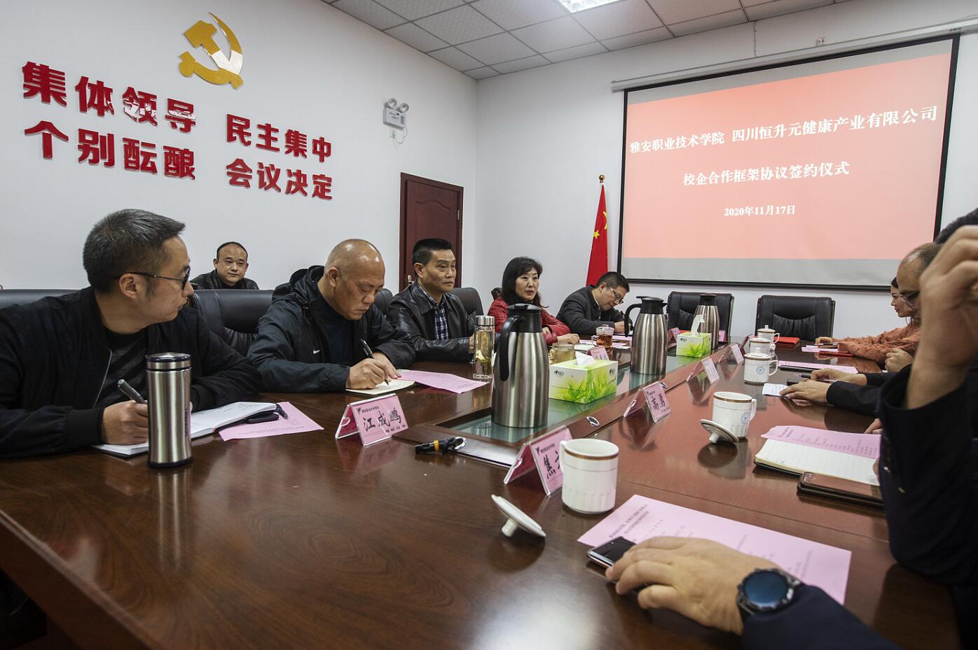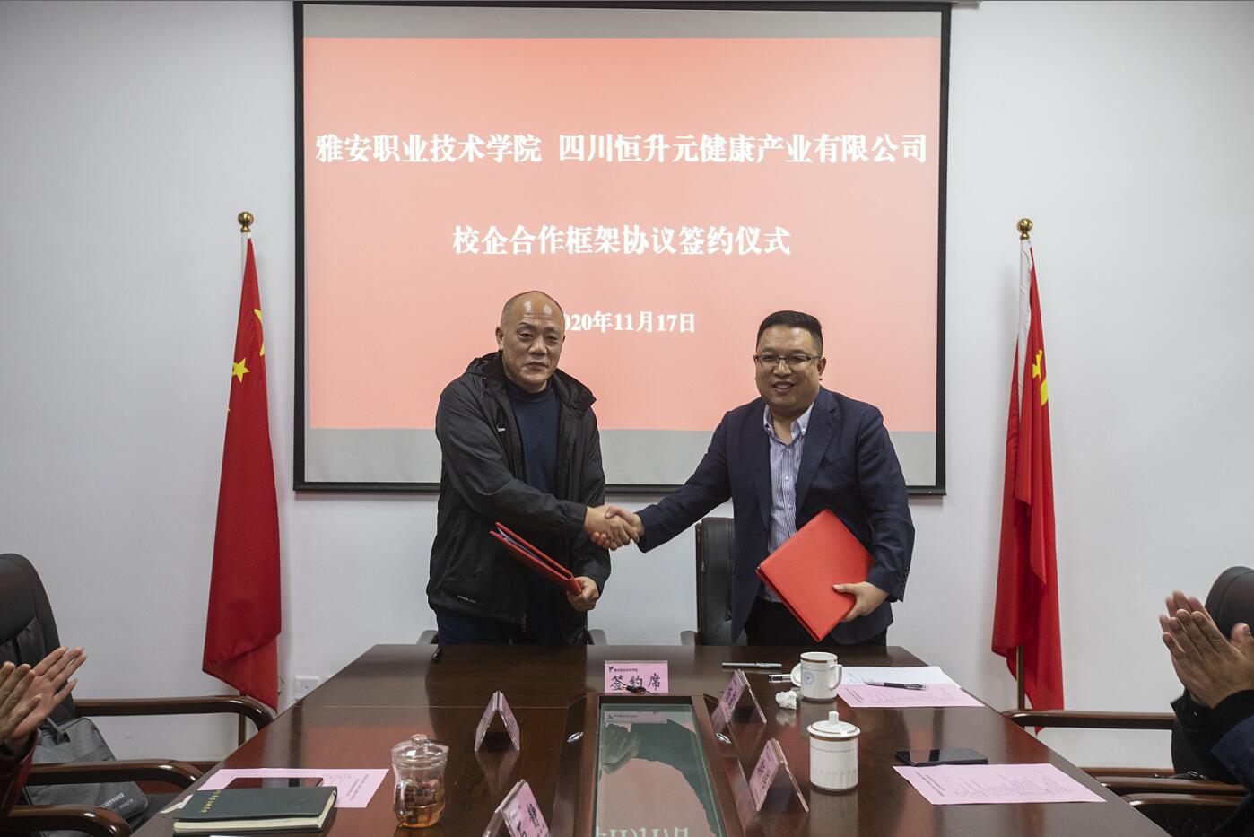 11月17日下午,学院与四川恒升元健康产业有限公司在育才路210会议室成功举行校企合作框架协议签约仪式。四川恒升元健康产业有限公司董事长张志兵,副总经理高勇、斯伟、焦方涛,学院党委书记李春模,党委委员、副院长、临床医学院党总支书记樊正康,药学与检验学院、中医与康复养生学院主要负责人以及部分教师代表等参加签约仪式。学院党委副书记、院长石静主持签约仪式。
