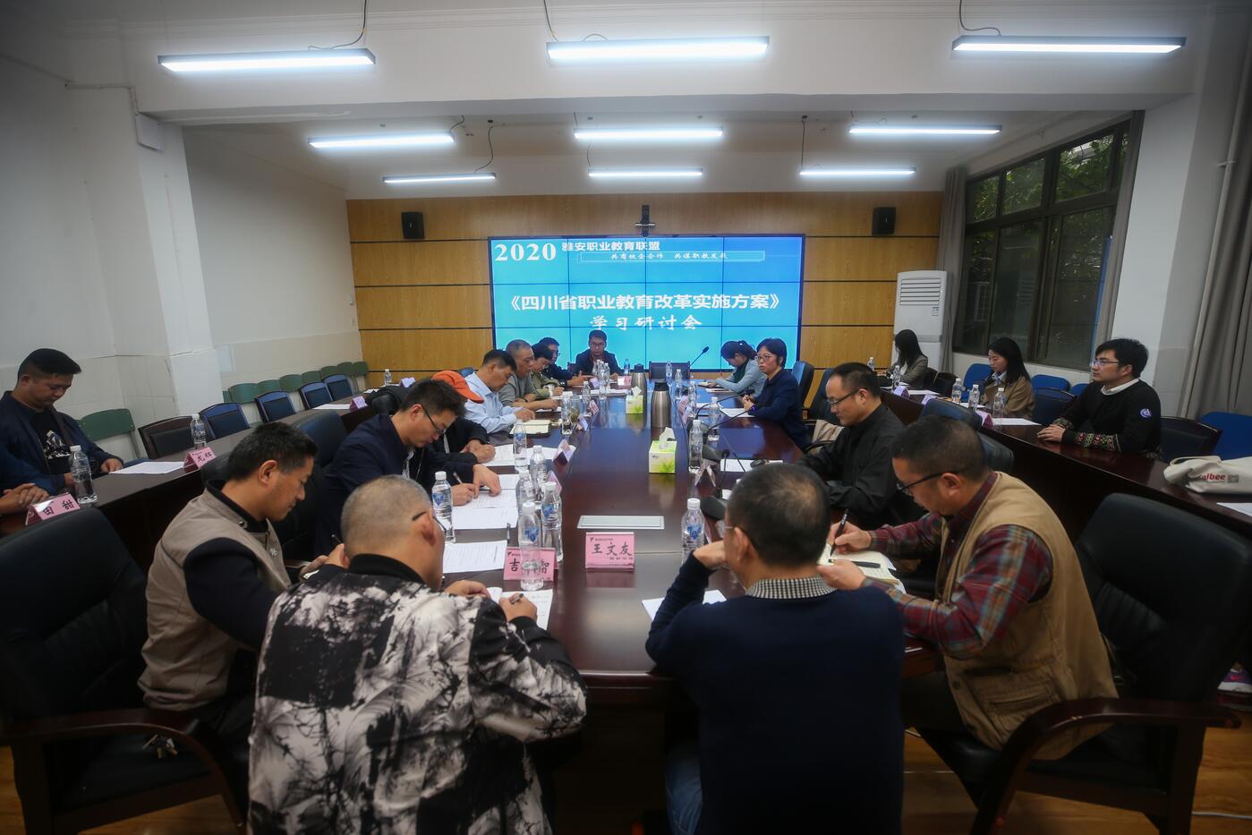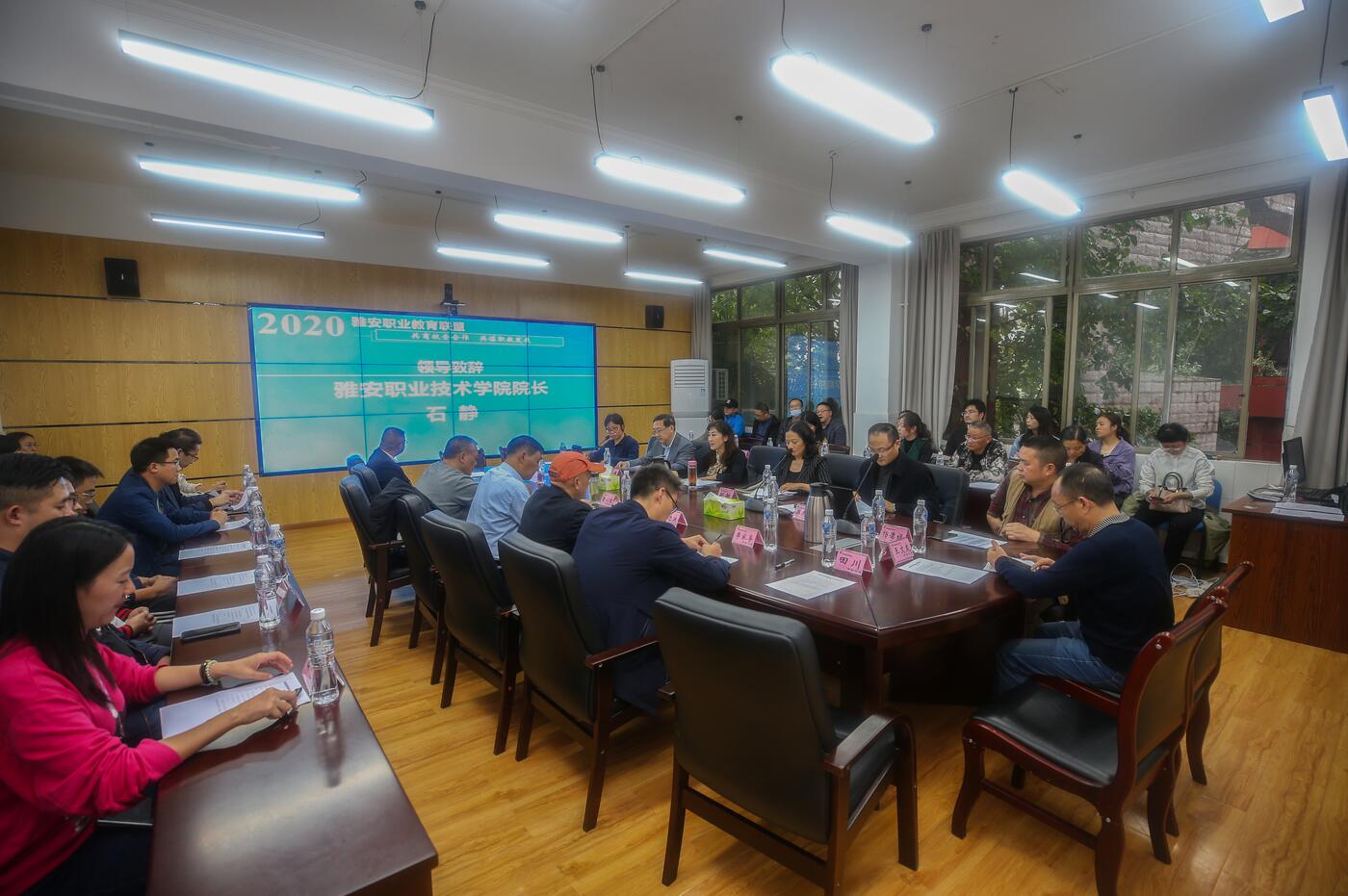 雅安市教育局职教科科长杨德福,20余名联盟成员单位代表,学院相关职能部门负责人以及各二级学院(部)负责人参加了会议。