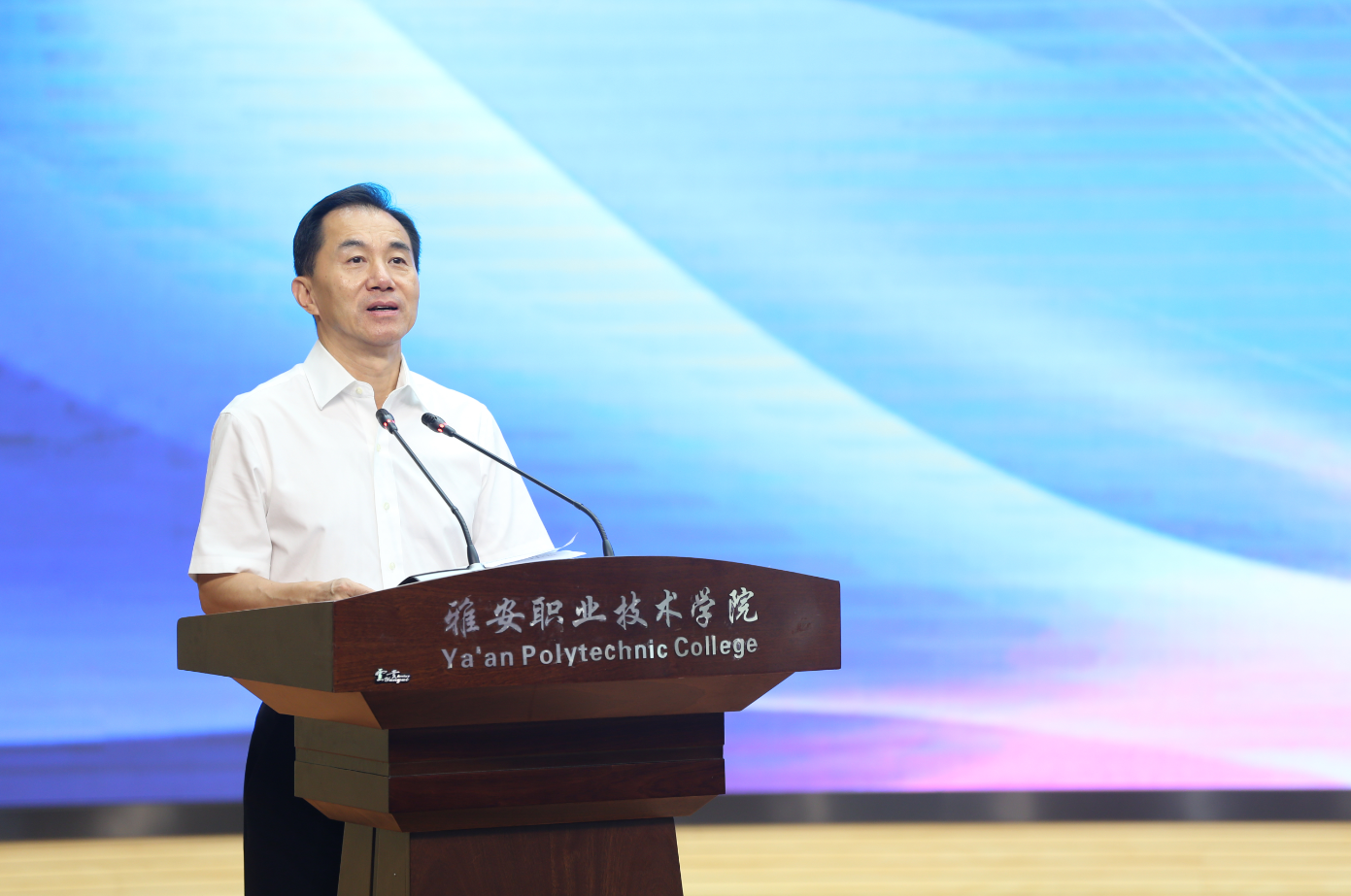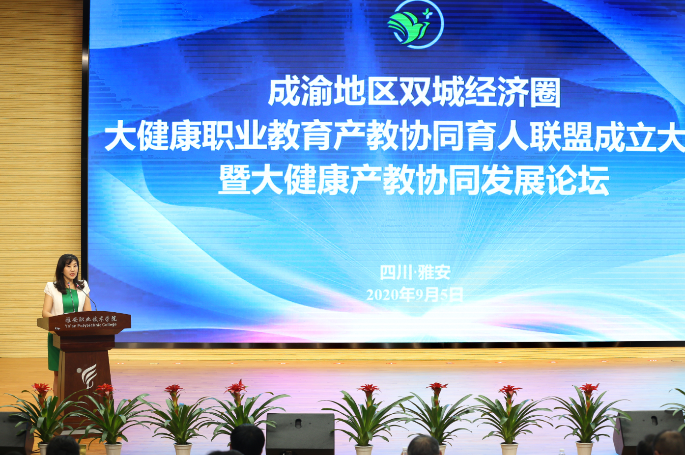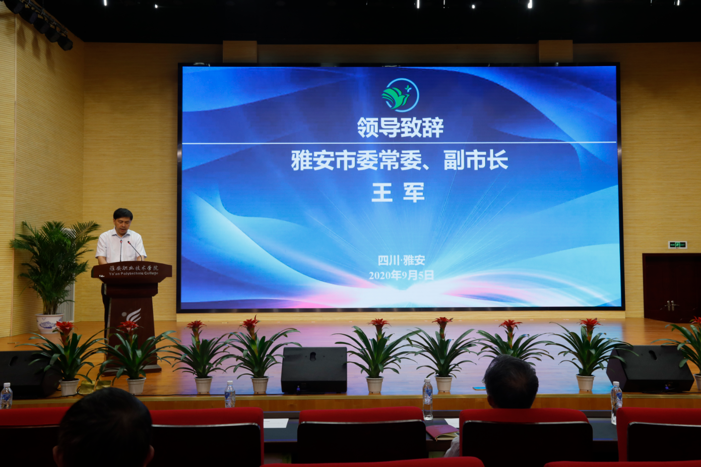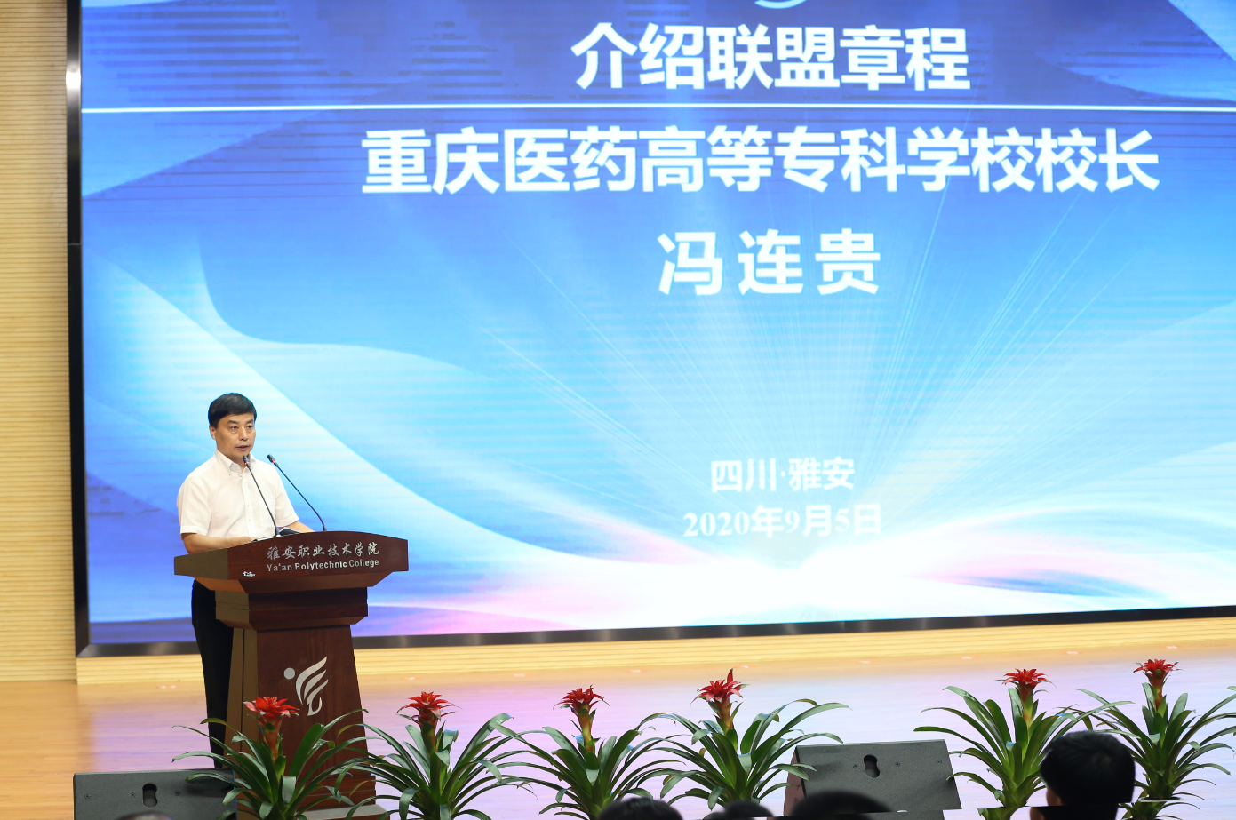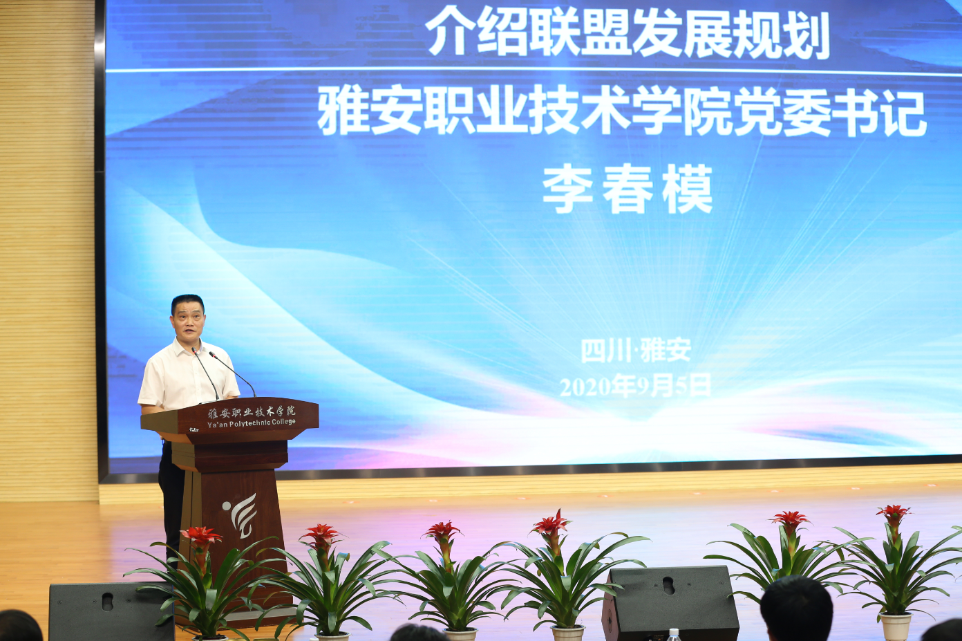 雅安市委常委、副市长王军致辞 学院党委书记李春模介绍联盟总体发展思路
