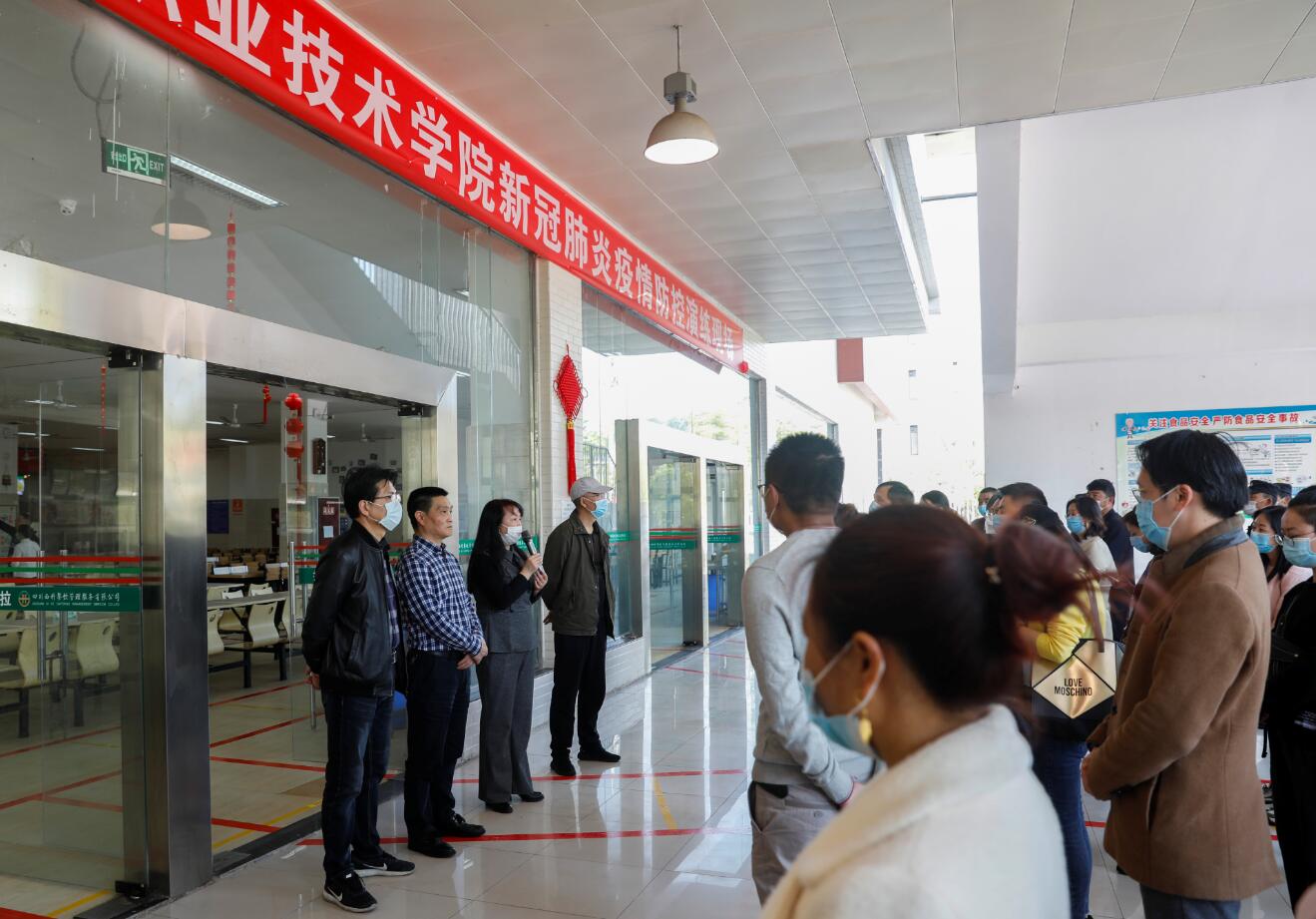 为有序做好开学疫情防控工作,保障师生的身体健康和生命安全,学院于4月23日下午、4月24日下午分别在青年路校区、实训与服务中心、临床医学中心开展学生返校疫情防控模拟演练。雅安市委宣传部副部长寇青同志莅临学院观摩指导,学院党委书记、新型冠状病毒感染肺炎防控工作领导小组组长李春模,学院党委副书记、院长、新型冠状病毒感染肺炎防控工作领导小组组长石静担任演练总指挥。党委副书记付洪涛、党委委员副院长樊先茂、副院长樊正康分别作为各校区演练现场指挥。学院党政班子成员、各部门及二级学院(部)负责人、全体辅导员(班主任)、教学及学管干事、学院新型冠状病毒感染肺炎防控工作领导小组其他人员等现场观摩演练。