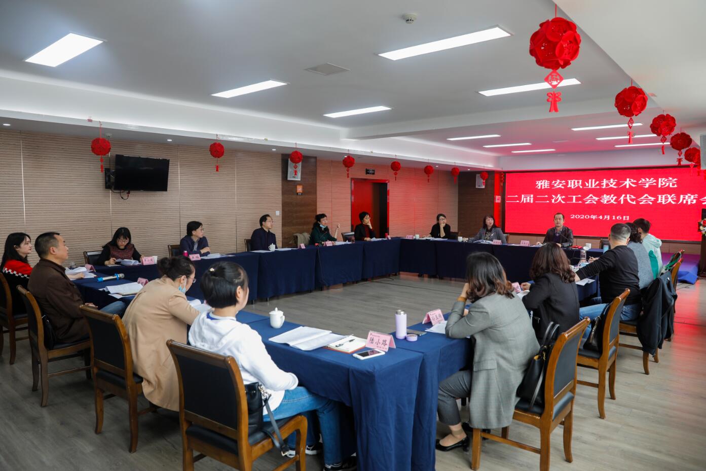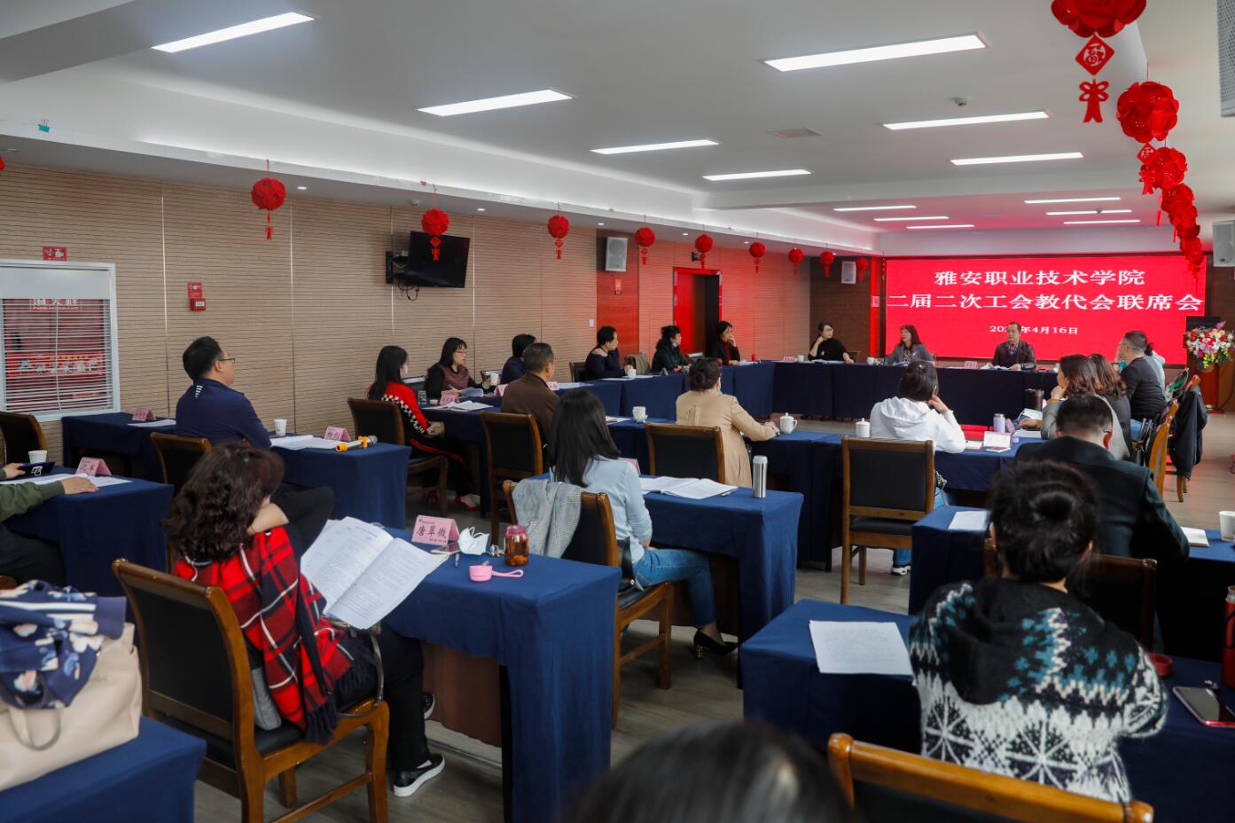 4月17日下午,学院工会委员会在青年路校区培训楼集雅厅会议室,召开工会教代会二届二次联席会,就《PP电子游戏网站教职工目标绩效考核指导意见 (试行)》、校歌歌词《扬帆追梦》进行讨论审议。工会委员、教代会专委会主任、代表团团长、工会小组长、相关职能部门负责人30余人参加会议。学院党委副书记、工会主席付洪涛主持会议。