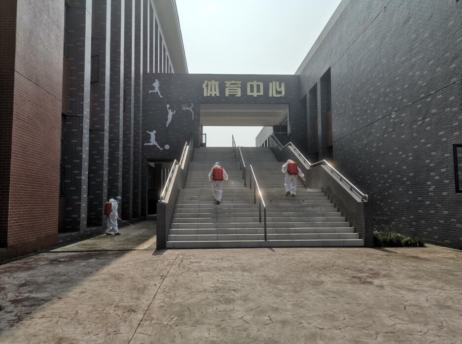 董赟参照《四川省教育系统防控新型冠状病毒感染肺炎疫情确保开学安全的工作预案》,详细讲解了消毒工作基础知识、操作要点。从防护服的穿脱和消毒液的特性以及存放等基本知识开始,按照消毒流程详细讲解了消毒液的配制、喷雾器的使用、不同环境的消毒规范及技巧,并进行了实际演练。