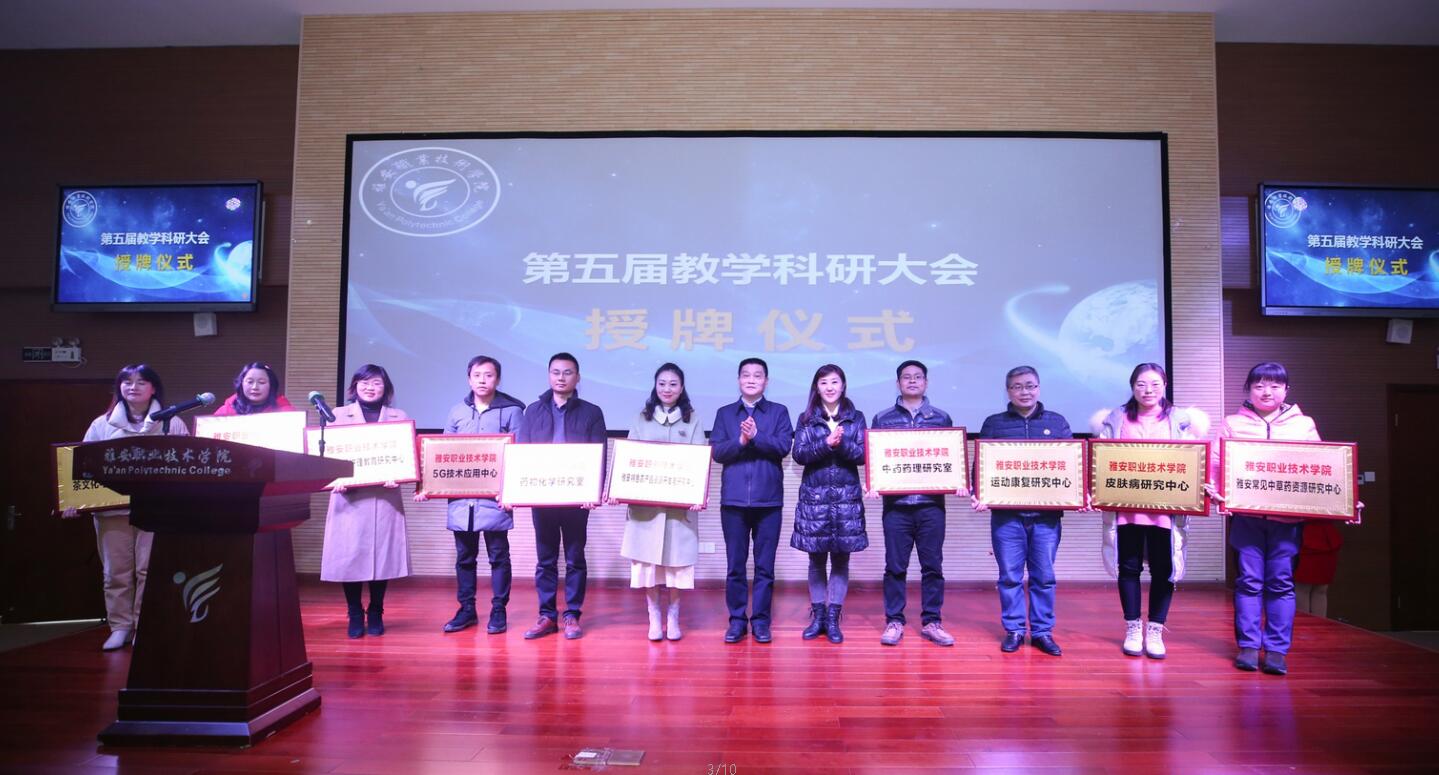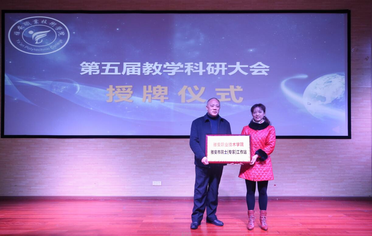 大会集中表彰了近两年在教育教学和科研工作中表现突出的优秀个人和先进团队,涵盖了四川省高职院校教师教学能力大赛、四川省高等职业院校体育教师教学技能大赛、四川省首届高校公共艺术类课程比赛、四川高校思想政治理论课“精彩一课”讲课比赛、雅安市第三届普通教育教学成果奖、第三届“卓越教师奖”、第三届青年教师教学“新星奖”教学技能大赛、第一届“创新杯”教学设计比赛、2019年度科学研究优秀成果奖、第五届教育教学成果奖等奖项。会上,学院领导为获得表彰的团队和个人颁发了荣誉证书,并为院级科研机构授牌。雅安市科协副主席曾蓉为PP电子游戏网站雅安市院士工作站授牌。教师代表药学与检验学院梁大伟老师就教育教学、科研经验和个人的成长做了交流发言。