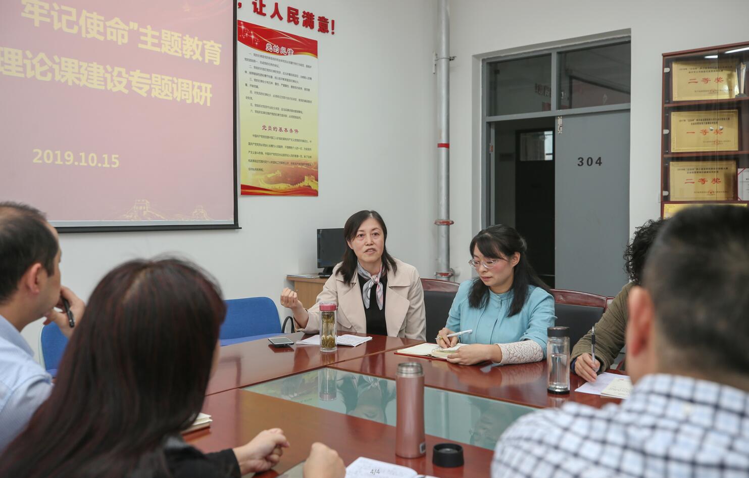 作为“不忘初心、牢记使命”主题教育内容,10月15日,学院党委书记李春模带队,党委副书记付洪涛,党委委员、组织人事处处长夏安琼,党委委员、宣传统战部部长郭英才一行到思想政治理论课教学部开展思想政治理论课建设专题调研。教务处、思政部负责人,思政课部分教师代表参加了调研座谈。