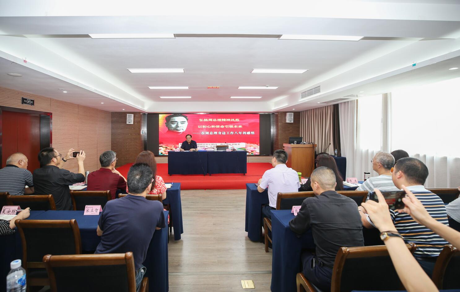 在学院即将开展“不忘初心,牢记使命”主题教育之际,9月9日,学院举行2019年第10次党委中心组(扩大)学习会,邀请武警指挥学院原副院长、周恩来总理生前秘书、中共中央文献研究会周恩来思想生平研究分会副会长纪东少将来到学院,在青年路校区培训中心5楼集雅厅做了题为《弘扬周总理精神风范,以初心和使命引领未来——在周总理身边工作八年的感悟》的专题讲座。学院党委班子成员,中层干部,各党总支(直属党支部)委员、党支部委员代表、民主党派负责人、思政部等二级学院(部)教师代表100余人聆听了讲座。讲座由学院党委书记李春模主持。