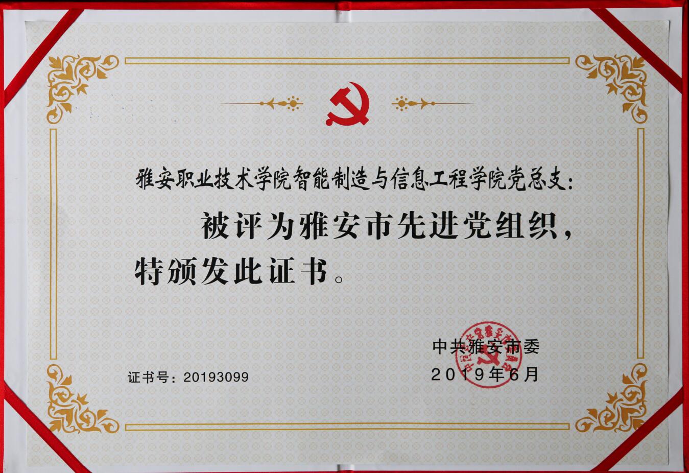 近日,从《中共雅安市委关于表彰雅安市优秀共产党员、优秀党务工作者、先进党组织的决定》(雅委〔2019〕169 号)获悉,学院教师、甘孜州雅江县波斯河乡党委副书记(挂职)王飞获雅安市优秀共产党员荣誉称号,药学与检验学院党总支、智能制造与信息工程学院党总支获雅安市先进党总支荣誉称号。