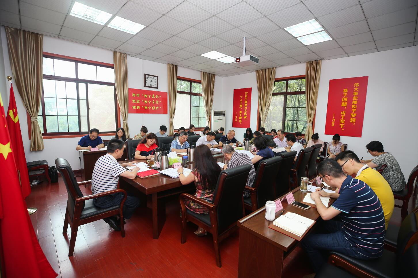 7月10日上午,学院第9次党委中心组(扩大)学习会在育才路校区B210会议室召开。本次理论学习会重点结合贯彻落实市委巡察组巡察学院党委反馈意见的整改工作要求,进一步提高思想认识和政治站位,为召开巡察整改专题民主生活会做好理论武装准备。会议传达学习了习近平总书记的重要讲话精神,再次加深学习省委重要会议精神以及部分党内法规和学院规章制度。党委中心组成员,党总支(直属党支部)书记、副书记,党委职能部门主要负责人参加了学习会。会议由学院党委书记李春模主持。