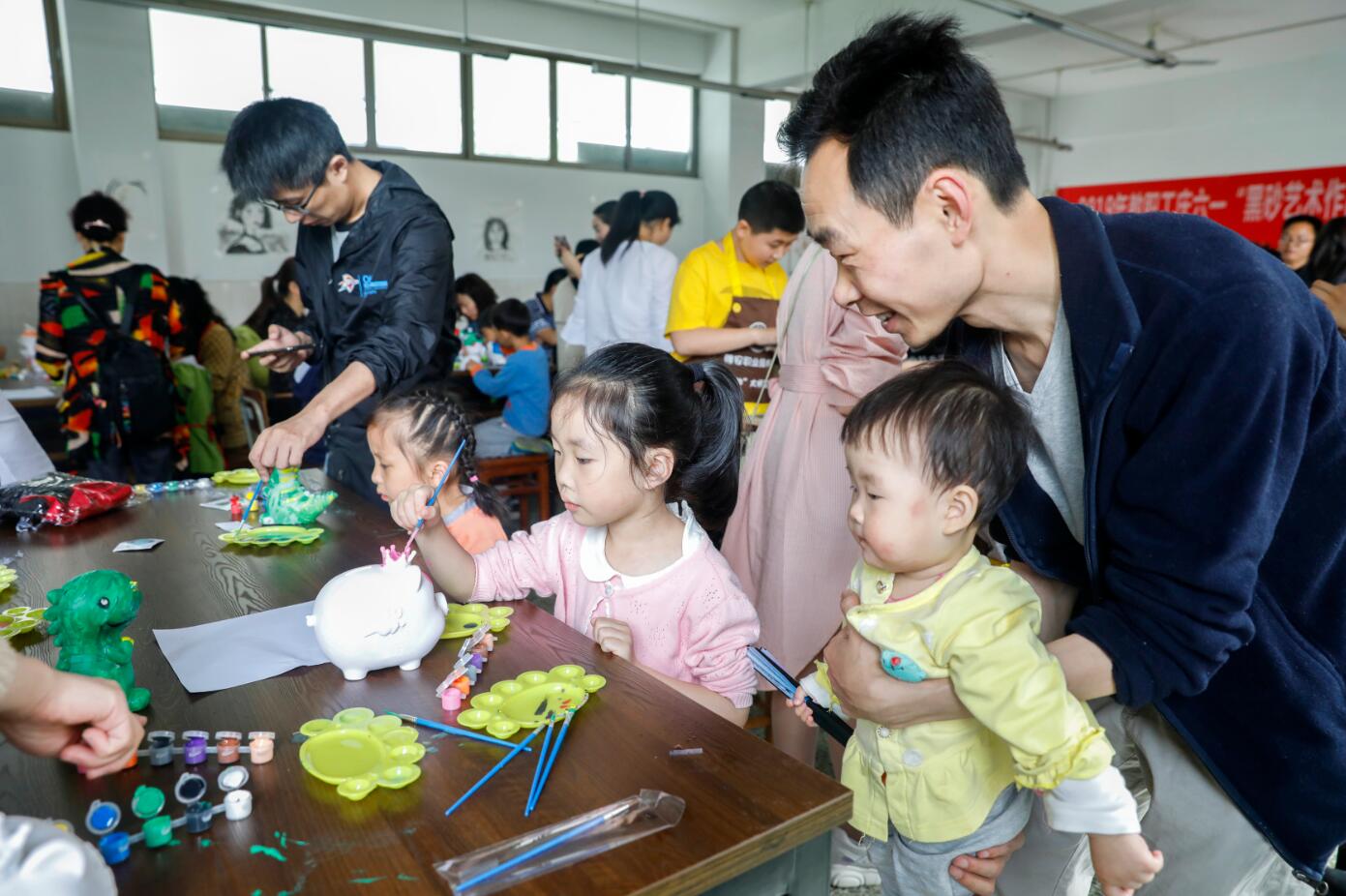 6月1日上午,由学院工会主办、师范学院联办的2019年教职工庆六一“彩绘石膏娃娃DIY”暨“黑砂艺术作品创意DIY”亲子活动,在学院青年路校区D303教室举行,党委副书记、工会主席付洪涛与来自全院13个工会小组的教职工及儿童100余人参加了此次活动。