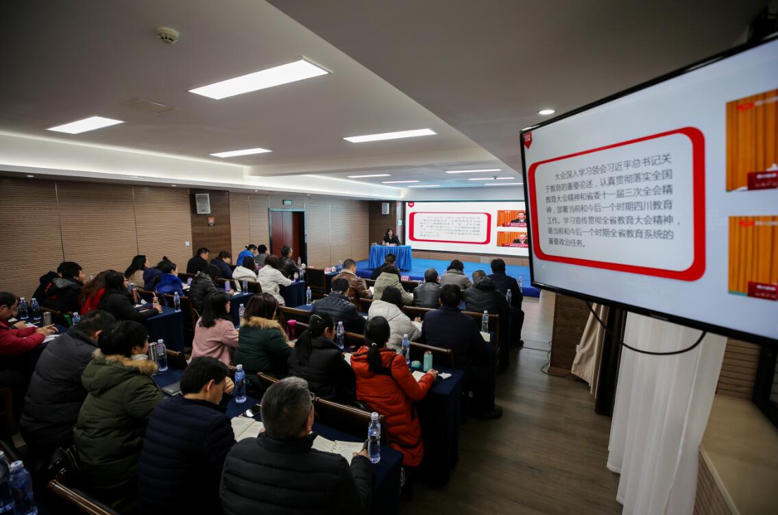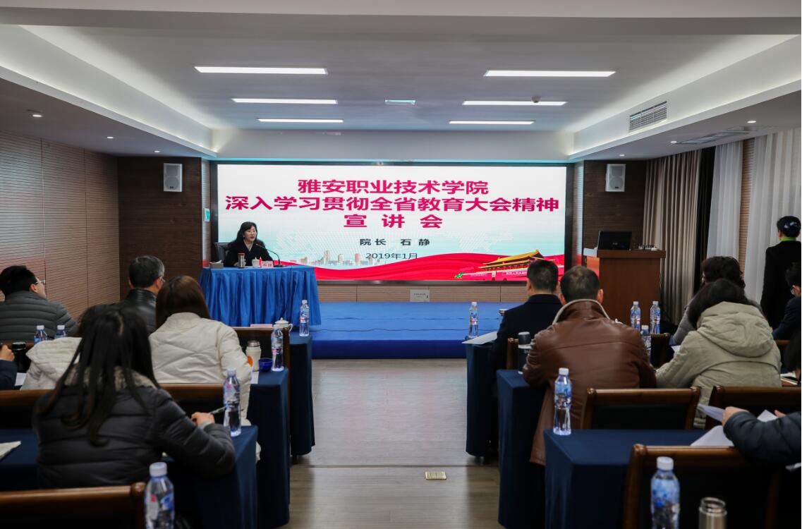 【本网讯】1月10日上午,学院在青年路校区培训中心5楼集雅厅召开了全省教育大会精神宣讲会。学院党委委员、中层干部、教师和学生代表共100余人参加了宣讲大会。学院院长石静宣讲大会精神,党委书记李春模主持会议。