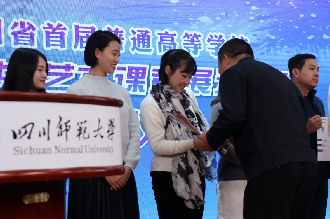 【本网讯】近日,我院师范学院副院长陆小路的参赛课程《中国画》在四川省教育厅开展的首届普通高校优秀公共艺术课程展示活动评选中以最高分获本次大赛美术设计类一等奖,并受邀到现场进行了教学展示。12月11至12日,由四川省教育厅主办、四川师范大学承办的四川省首届普通高等学校优秀公共艺术课程展示活动在四川师范大学成龙校区顺利举行。我院师范学院院长孙舫南带队,副院长陆小路、教师陈鑫参加了本次活动。