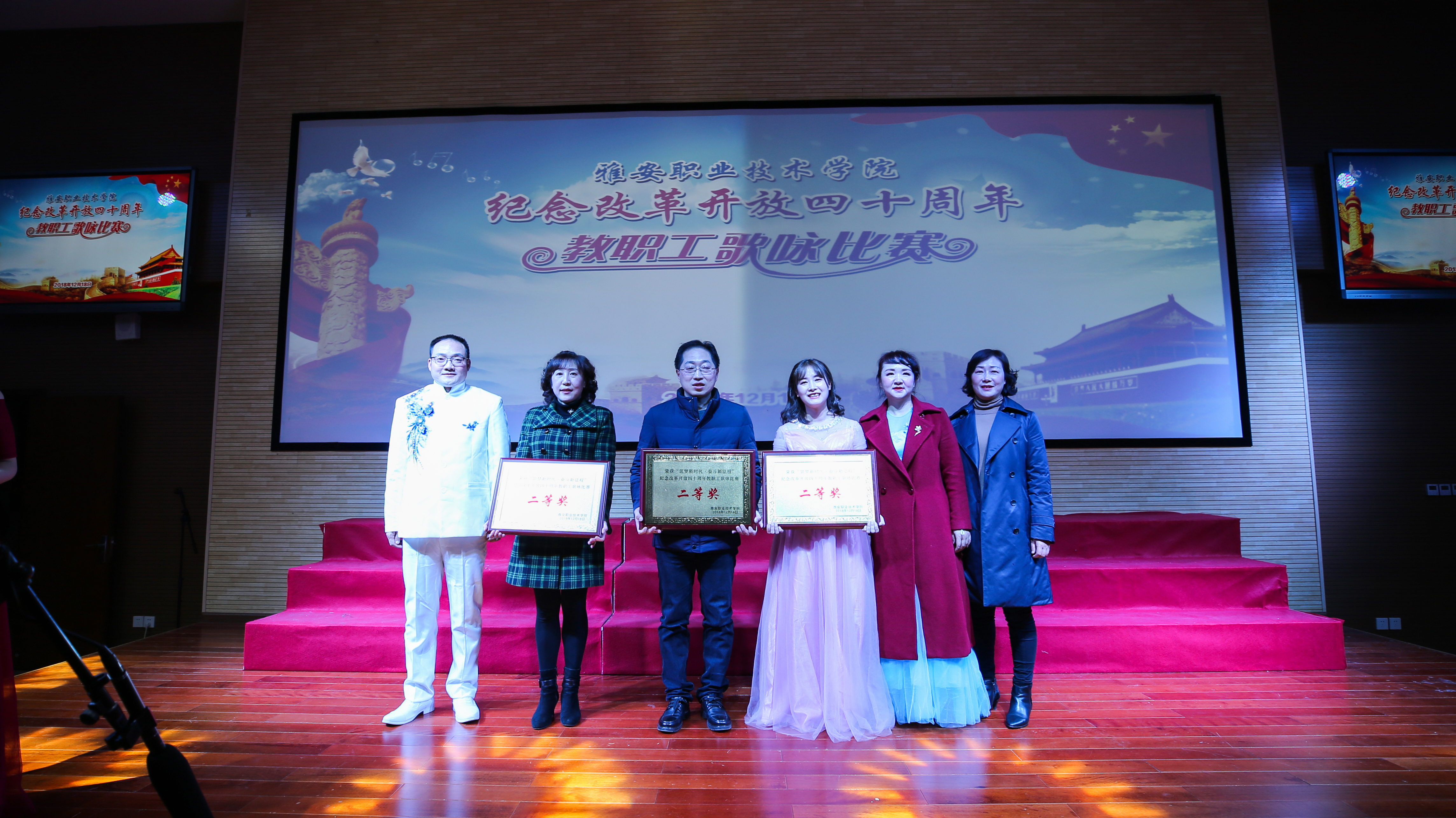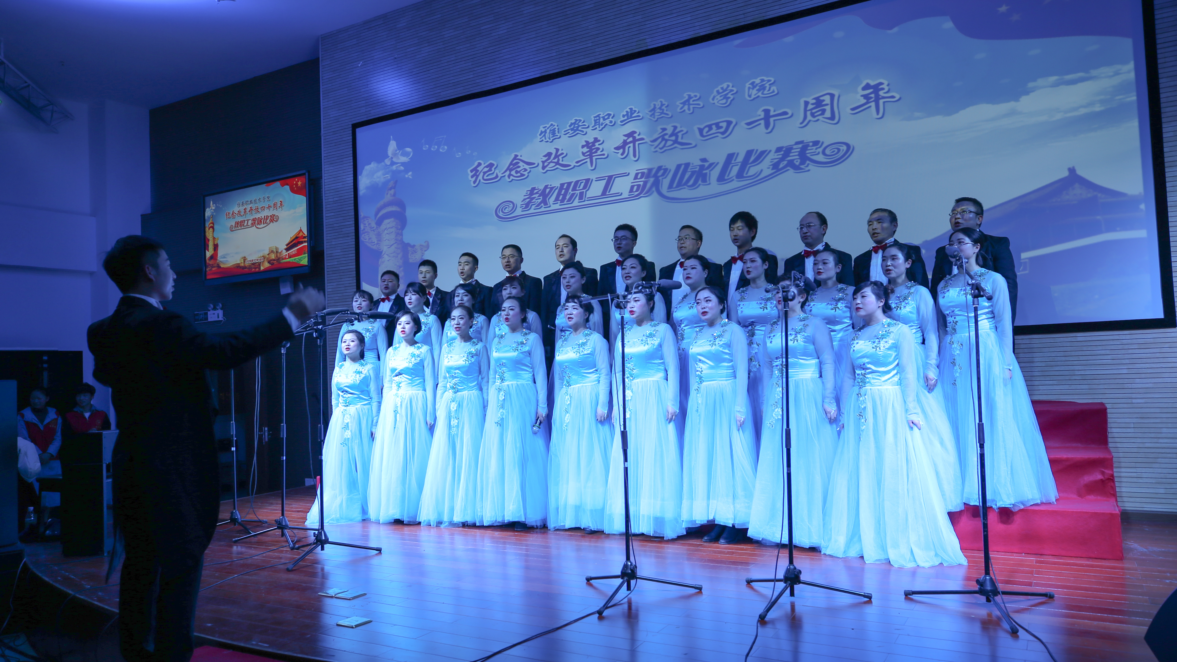 【本网讯】12月18日,PP电子游戏网站“筑梦新时代•奋斗新征程”庆祝改革开放四十周年教职工歌咏比赛在青年路校区实验实训楼二楼多功能厅隆重举行。学院党委书记李春模、院长石静等院领导莅临现场观看并参与演唱,各党总支、工会组成10支代表队、360余名教职工参加了演唱活动。比赛邀请了中国音协会员、四川省音协理事、雅安市音协主席李宣康,中国音协会员、四川省音协理事、雅安市音协副主席吕志健等5位专家担任评委。
